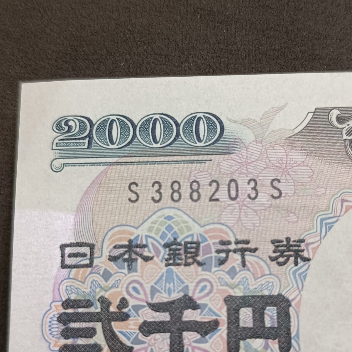 二千円札 2000円札 ピン札 アルファベット 1桁 S番 S388203S