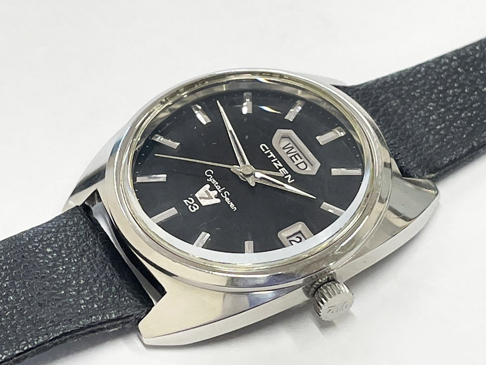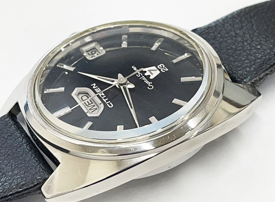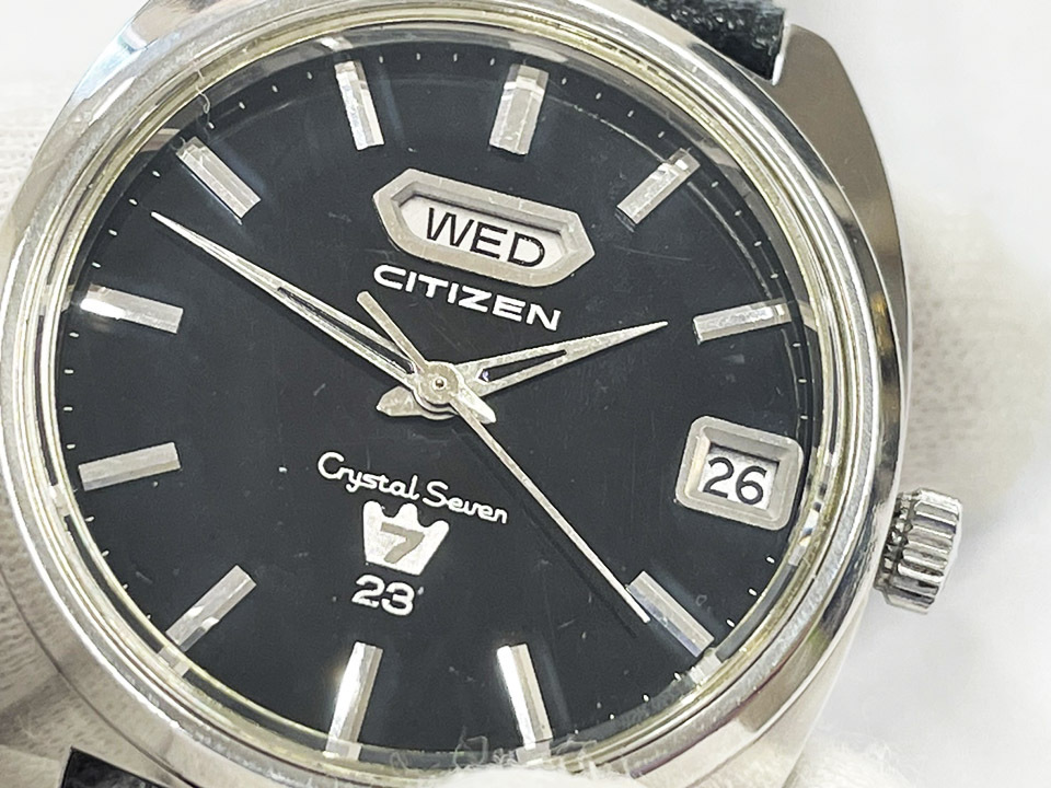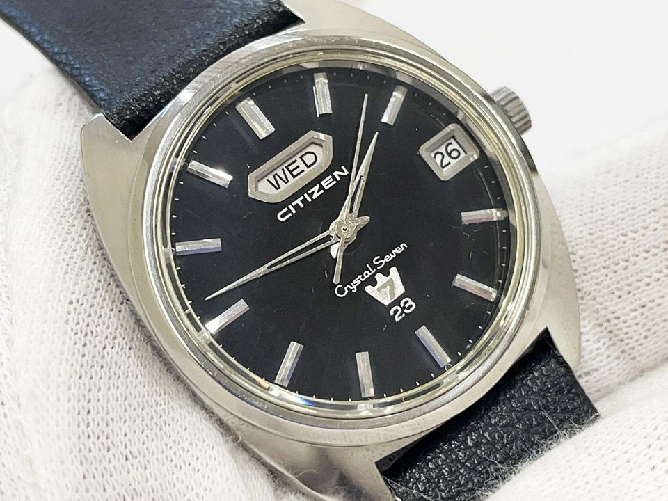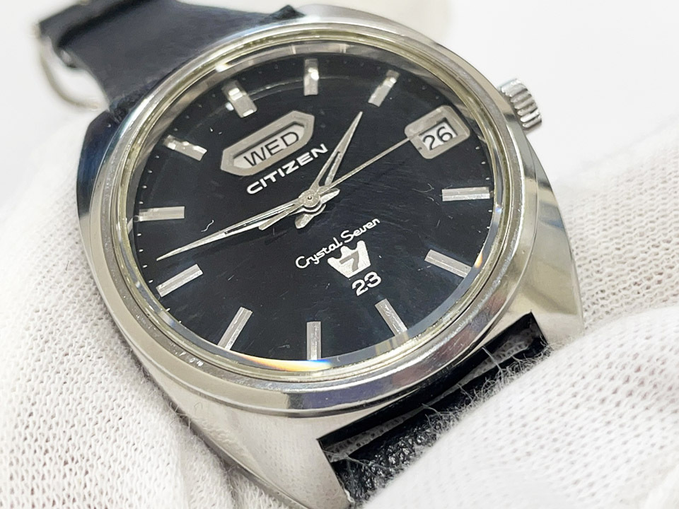 CITIZEN シチズン クリスタルセブン デイデイト 23石 CRYSTAL SEVEN 自動巻き 稼働 黒文字盤 60年代 ヴィンテージ メンズ腕時計