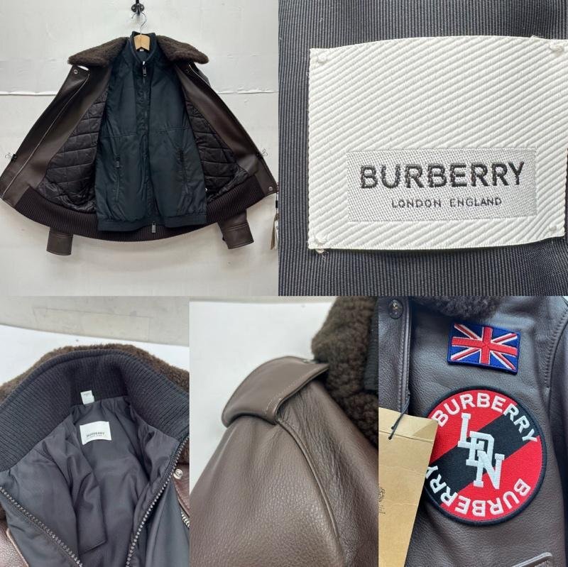 バーバリー G-1 レザー ジャケット フライト ムートン襟 ワッペン ライナー付き 8025225 38