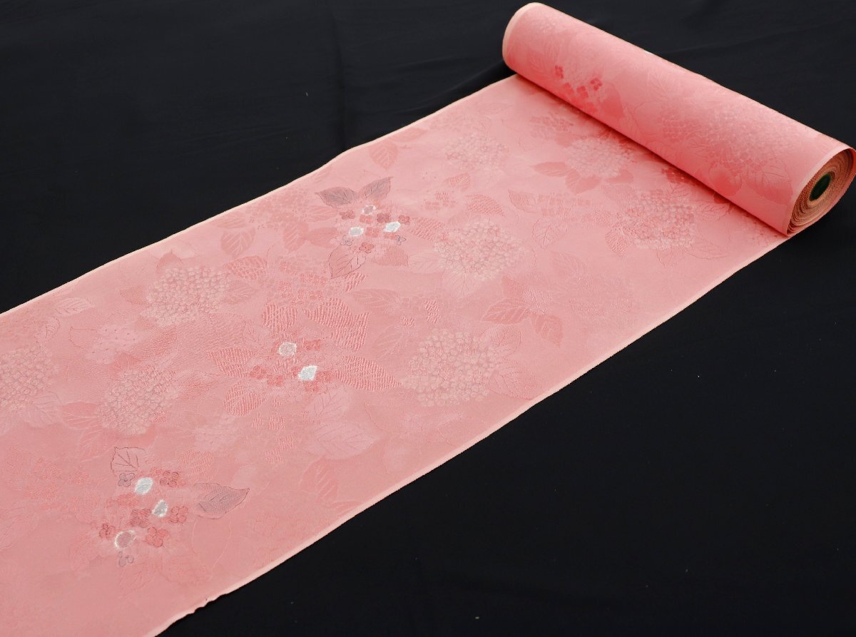 ピンク色系に染上げた、正絹 着尺 未使用品となります。