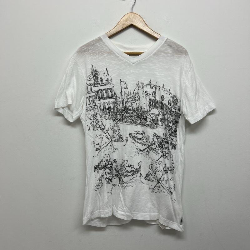 ディーゼル 風景画プリント Vネック Tシャツ S