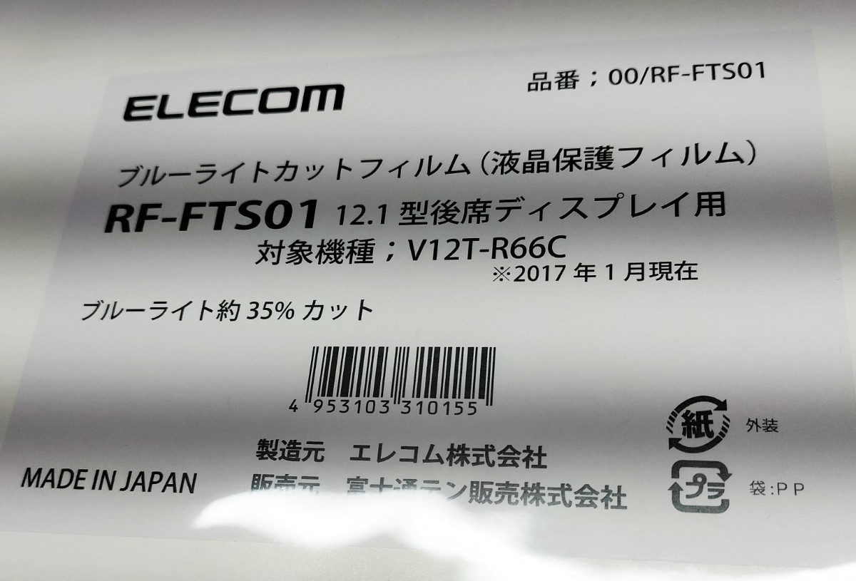 本来はトヨタのフリップダウンモニターV12T-R66C用ですが、普通に貼るタイプですので汎用品として使うのも良いと思います。