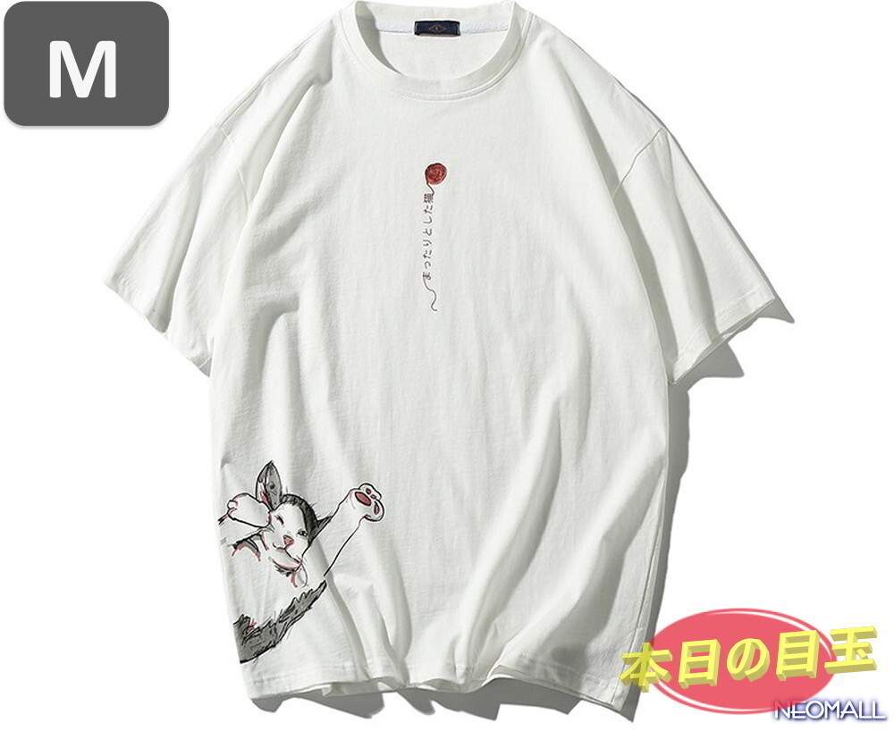 本日のお買得 ☆ 丸首 半袖 Tシャツ【466】 ホワイト Mサイズ トップス シャツ シンプル イラスト デザイン 春夏