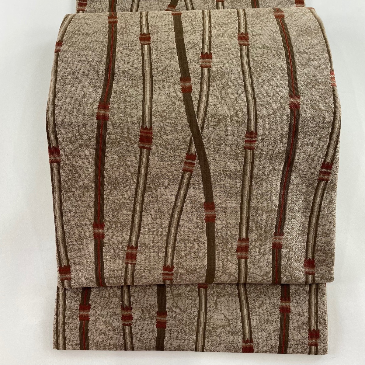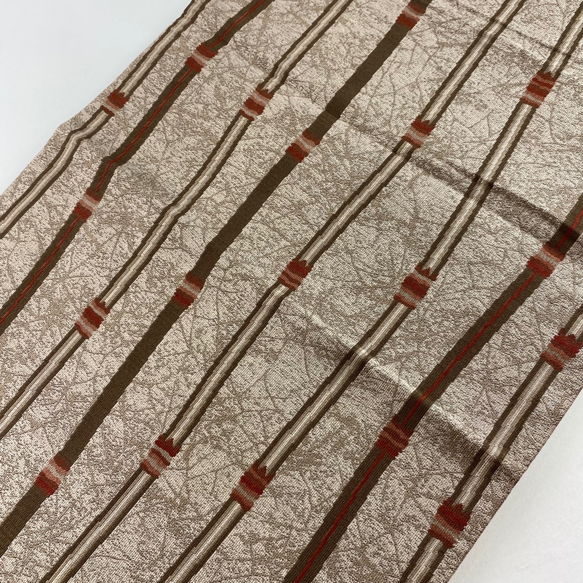 | 開き名古屋帯 美品 秀品 よろけ縞 茶色 正絹 【中古】 |