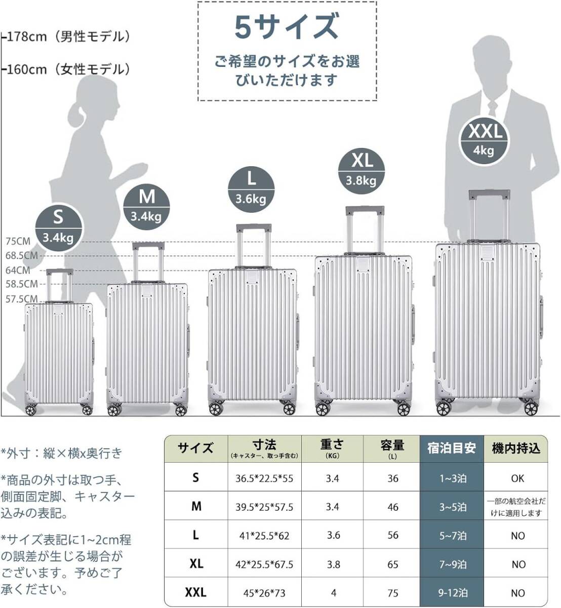 スーツケース XXLサイズ アルミフレーム 機内持ち込み キャリーケース tsaロック付 キャリーバッグ 大容量 量 360度回転 静音 ダブルキャ