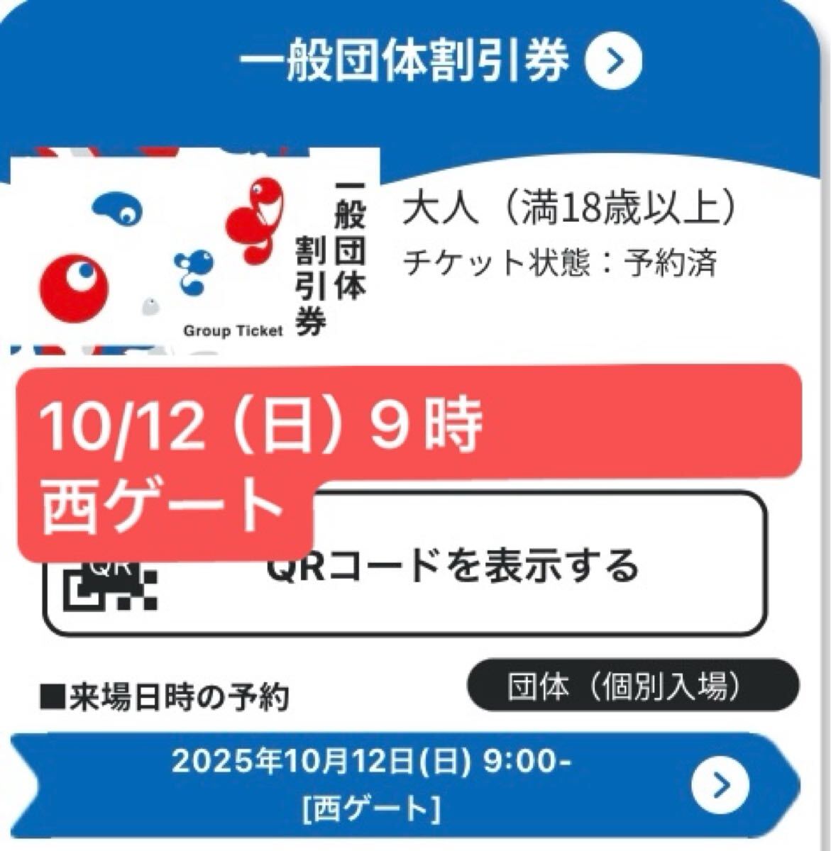10/12(日)9時〜西ゲート入場の電子チケット1枚です。