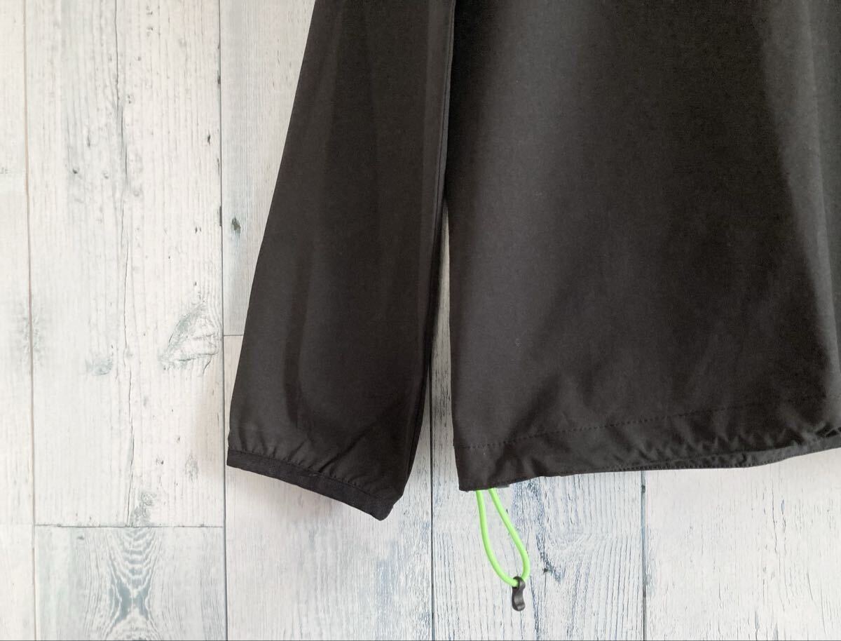 従来よりも撥水加工と生地の接着部分を多くし、加工剤にも弾性成分を加えた事で、洗濯や擦れなどによる加工面の剥離防止を強化しました。