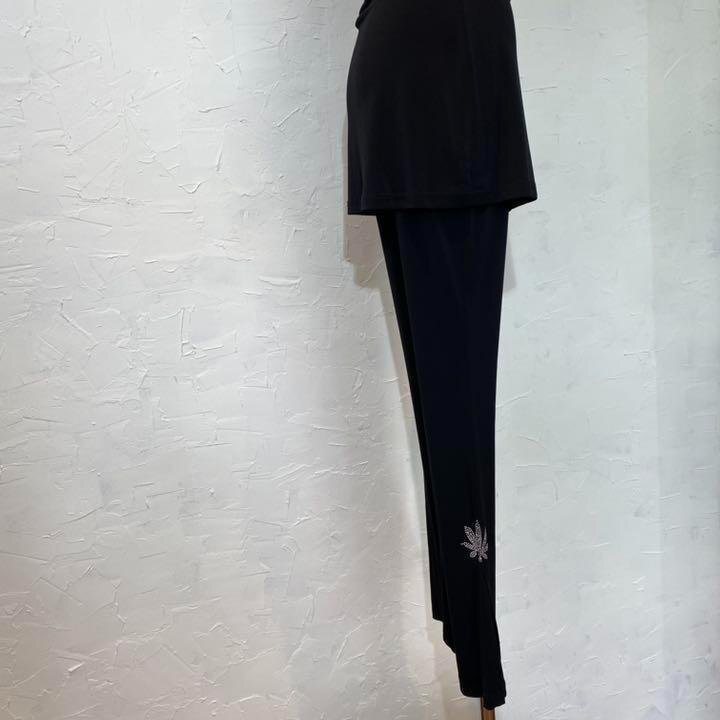 社交ダンスの、サラッと落ち感のあるストレッチ素材を使用した新品オーバースカート付きパンツです。