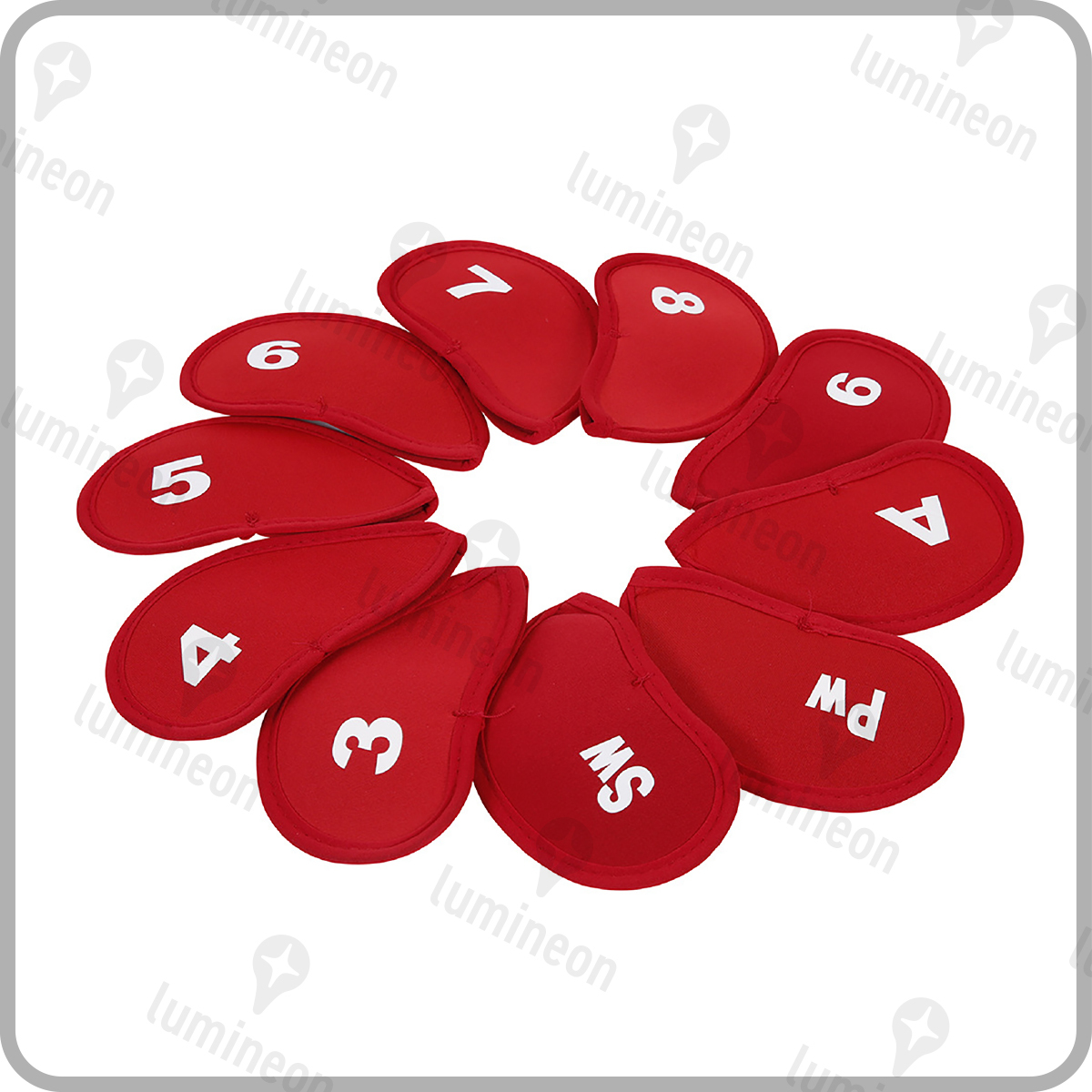 アイアン カバー ヘッド 10点セット 赤 レッド コンペ ゴルフ クラブ フード 番手付き シンプル おしゃれ 保護 安い 景品 小物 g034e