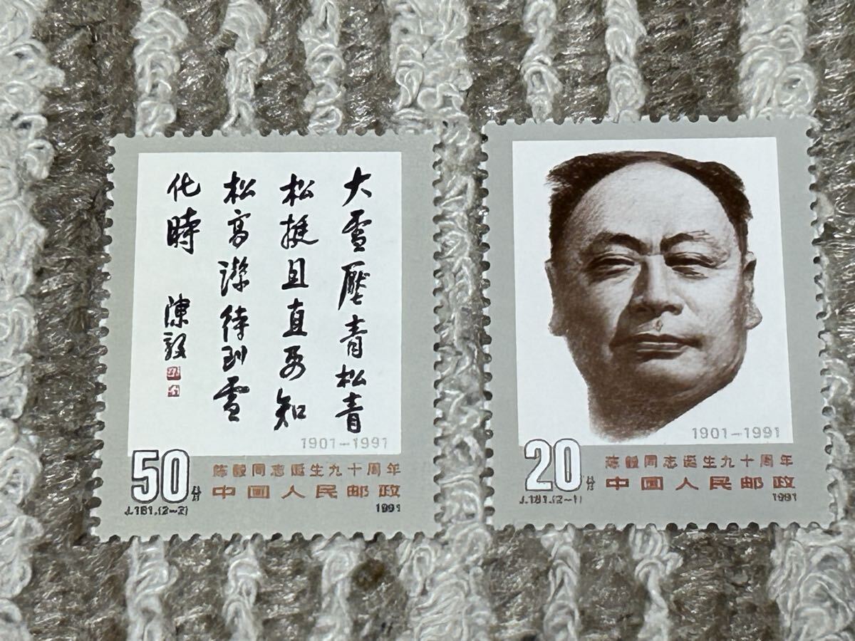 中国切手 中華人民郵政 陳穀同志誕生90周年 2種完 未使用