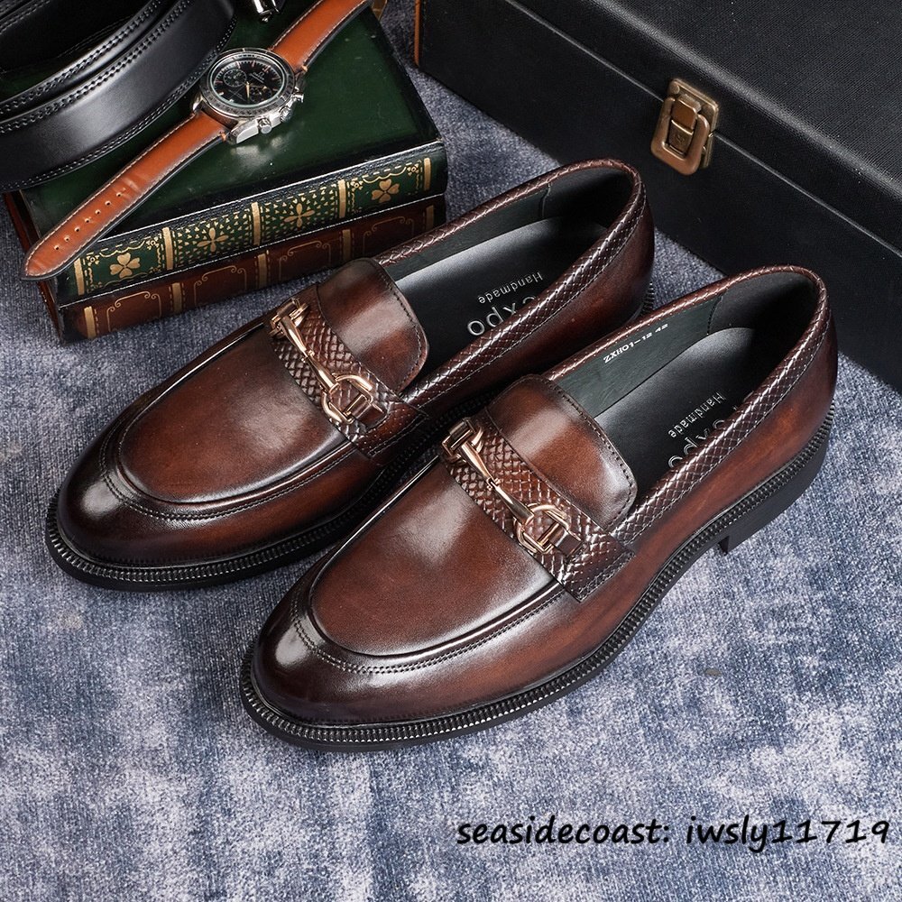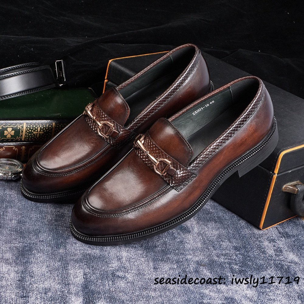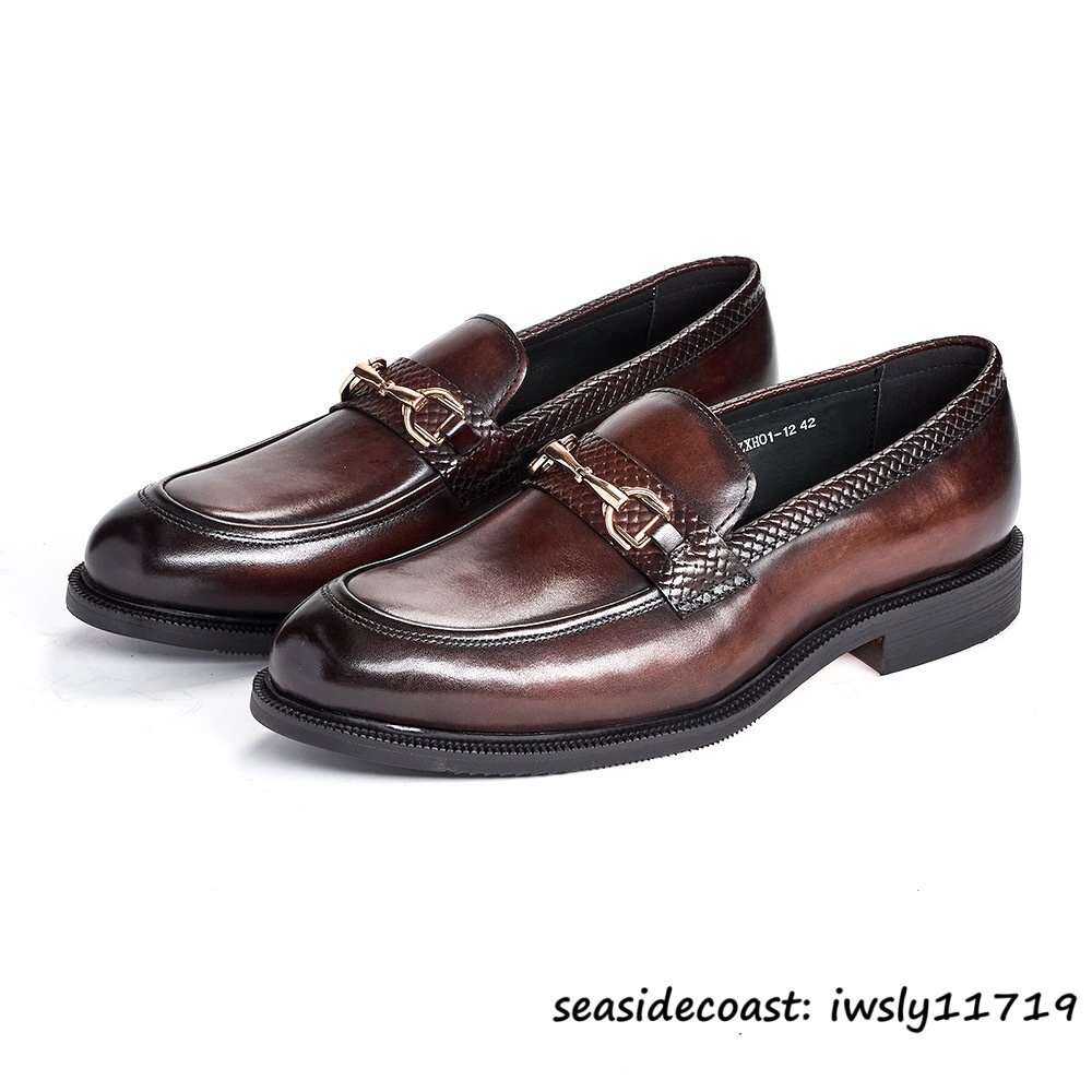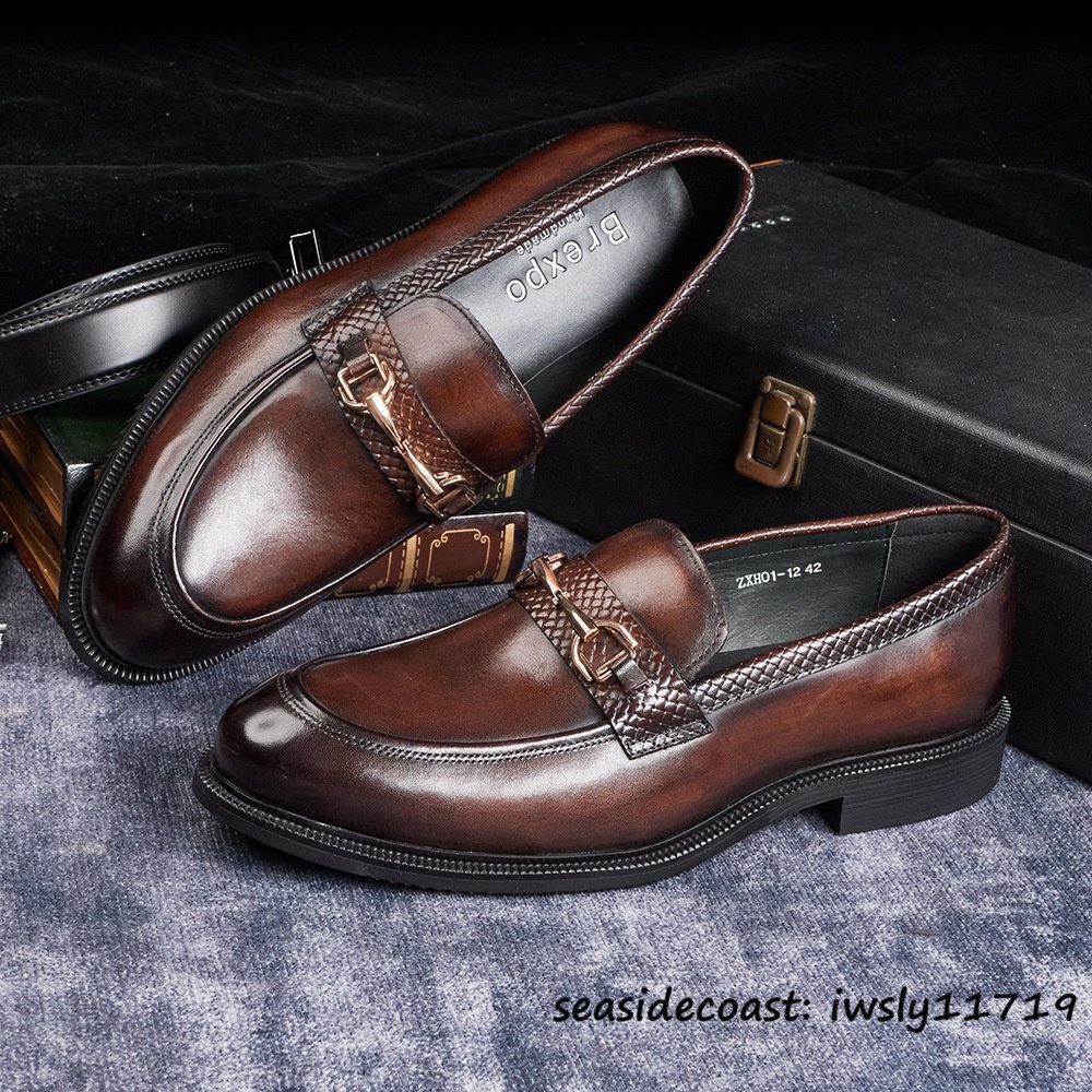 入手困難★ビットローファー メンズ 本革 職人手作り イギリス風 ビジネスシューズ 牛革 レザーシューズ 紳士靴 革靴 新品 ブラウン 25.0cm