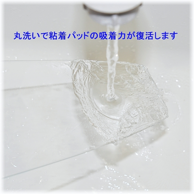 水で丸洗いして汚れを取ると粘着力が復活する、日本製の粘着パッドで固定。