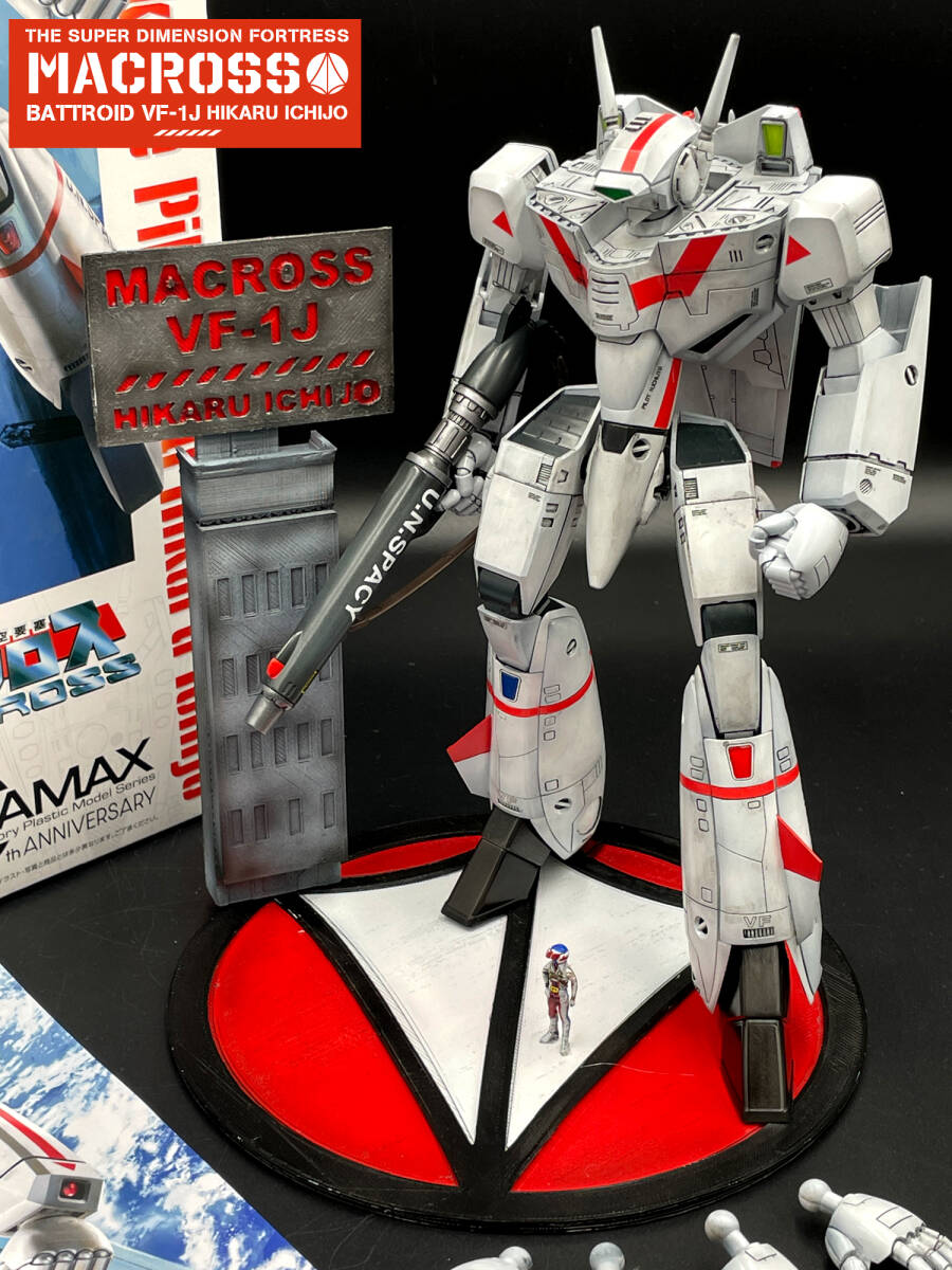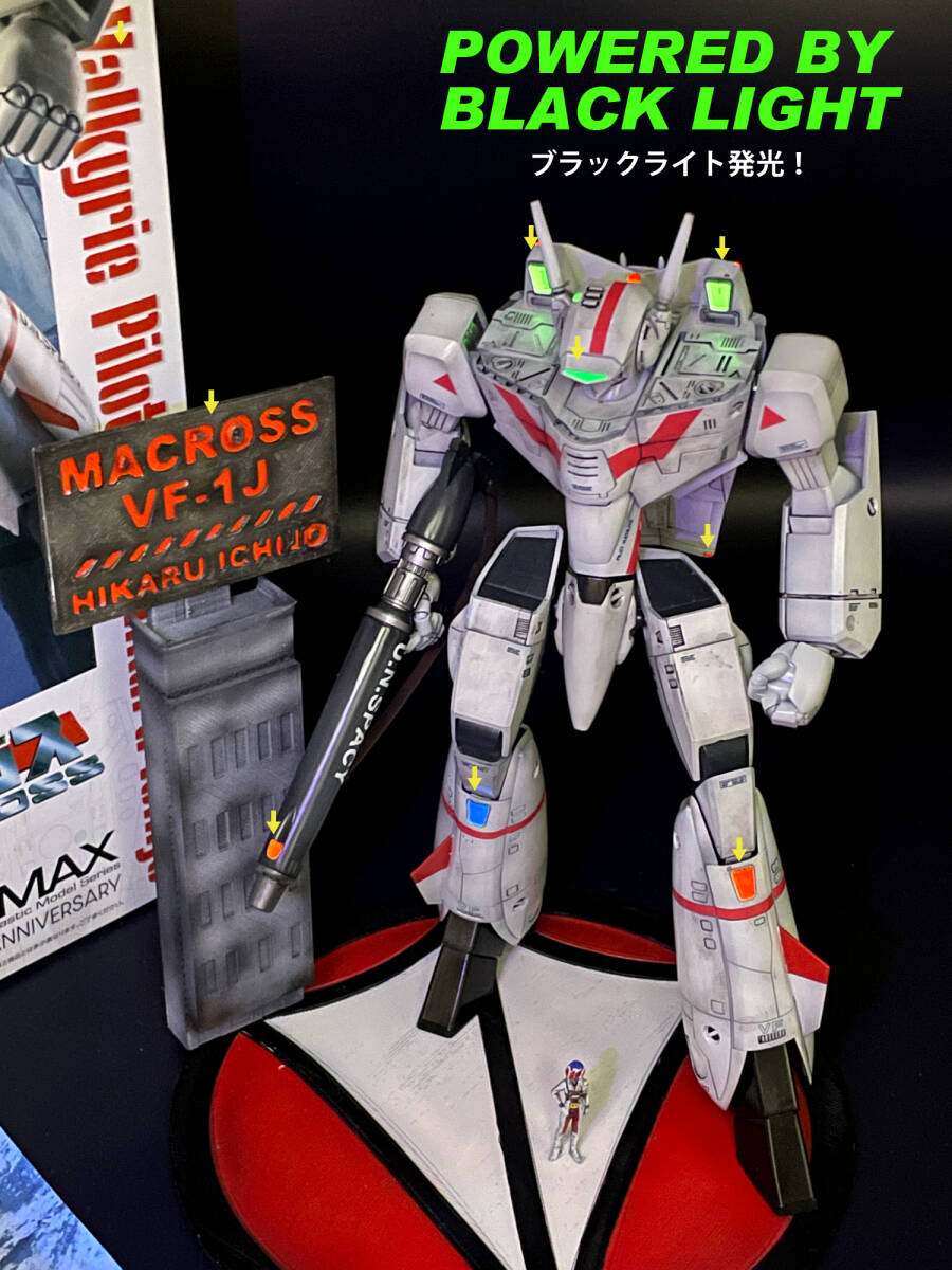 ★新作★ maxfactory マクロス VF-1J 1/72 バトロイド バルキリー 一条輝付属 全塗装 完成品 3D立体ステージ ブラックライト発光