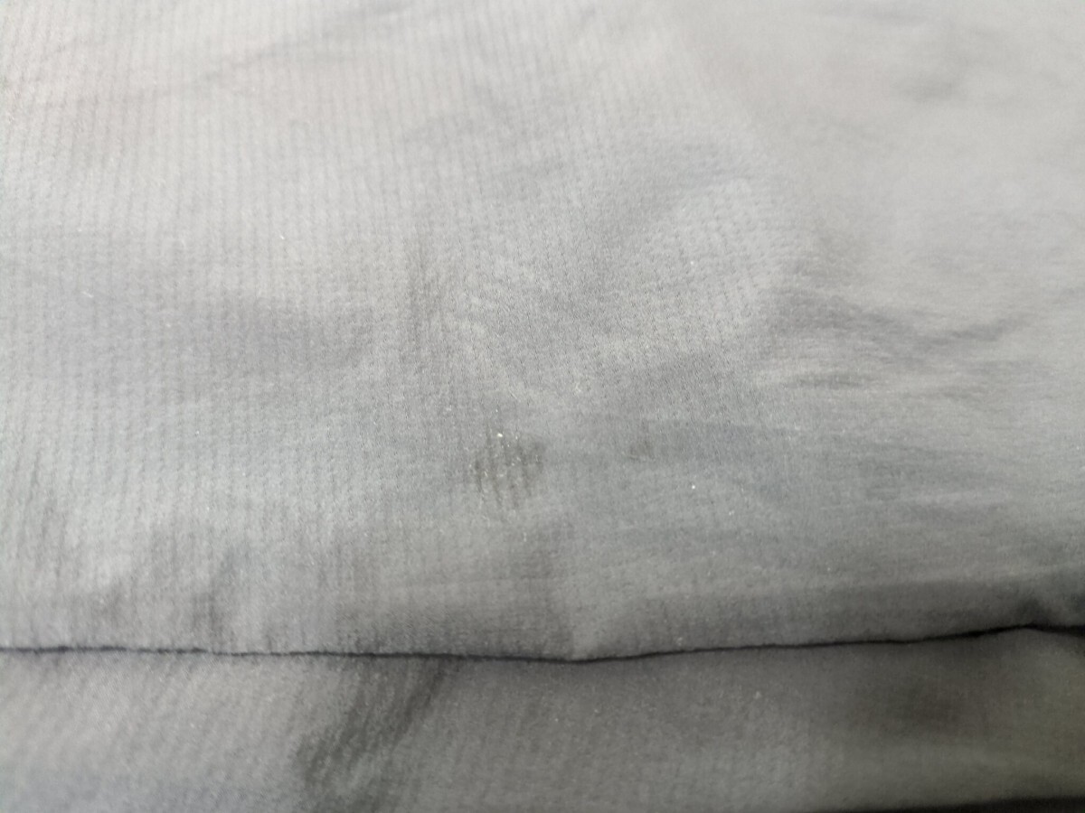 蒼系 ダークグレー系 フロント上部に使用感 ロゴ下に小穴 前の裾や袖先に汚れ バックに軽い毛玉 |