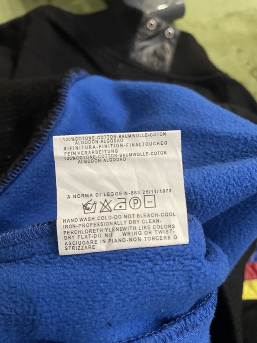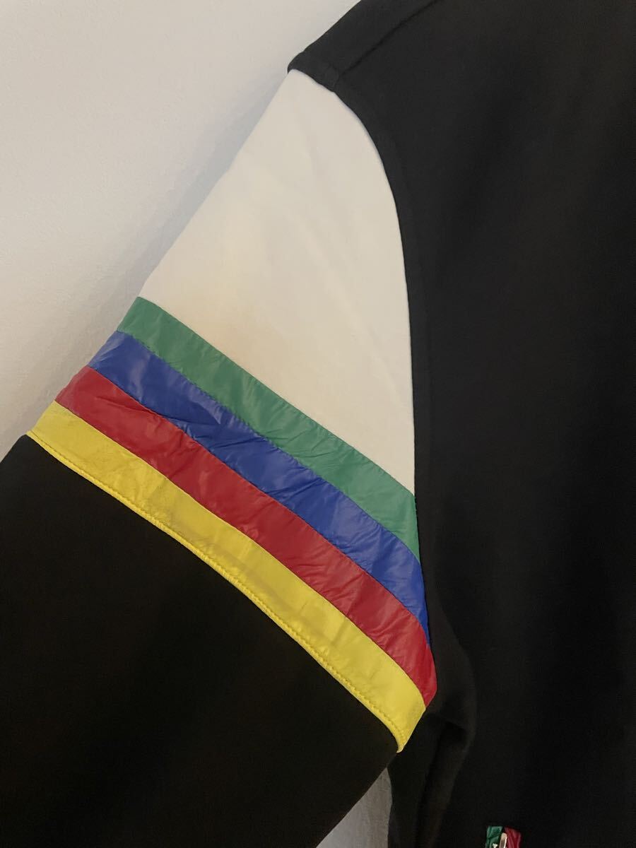 フロントとバックにブランドロゴプリント、袖にはレインボーカラーのラインが入ったスポーティーなデザイン。