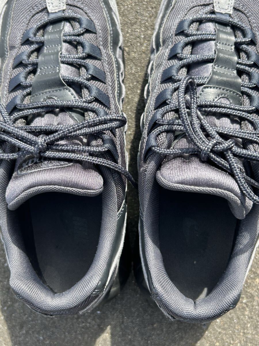 ・ブラックとダークグレー(アンスラサイト)の重厚なコントラストにガムソールが映える一足です。
