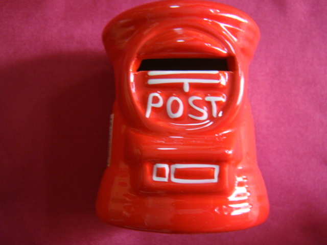 ゆうちょ銀行・JPバンク^,,.陶器製郵便/〒ポスト型貯金箱_.,,^「未使用品・非売品」