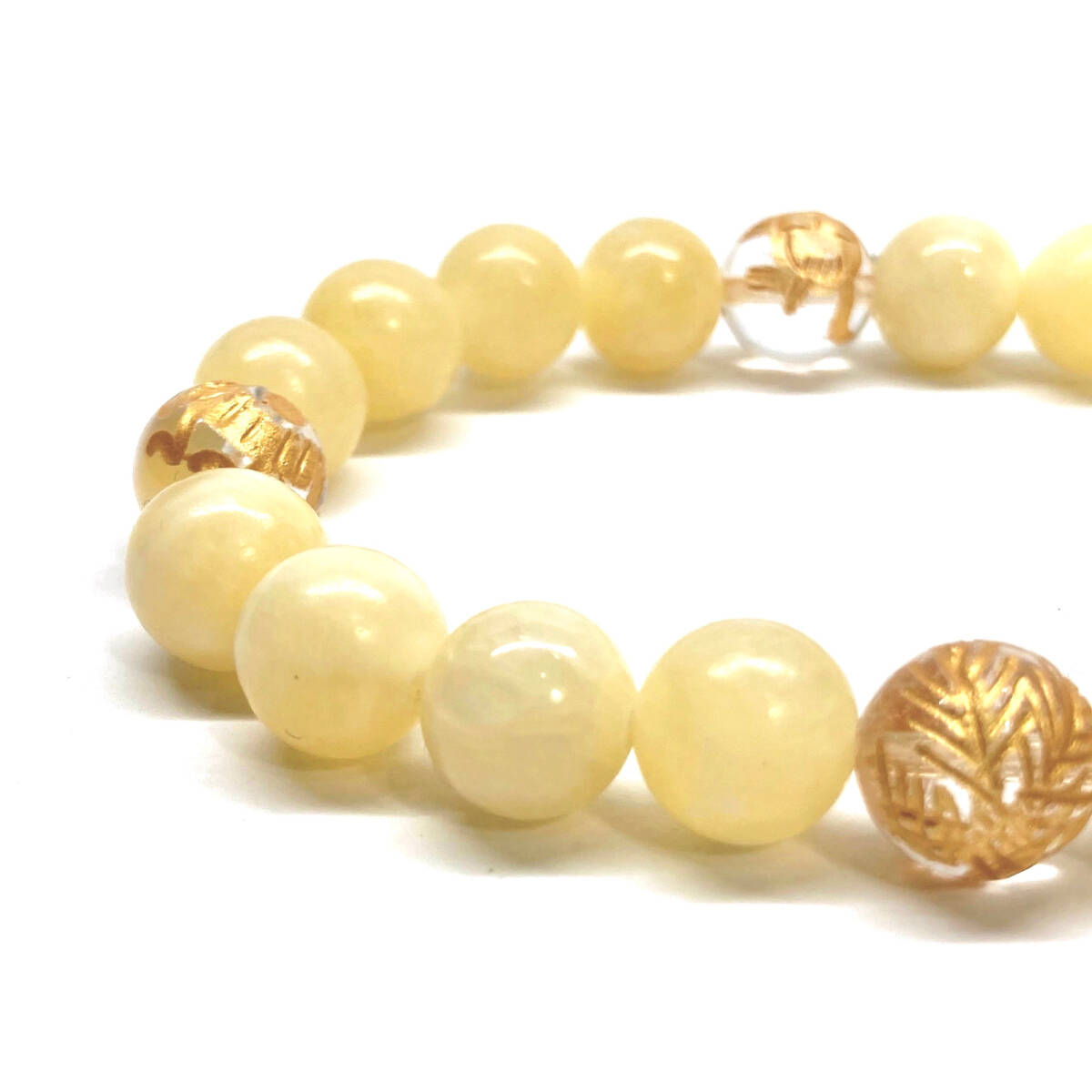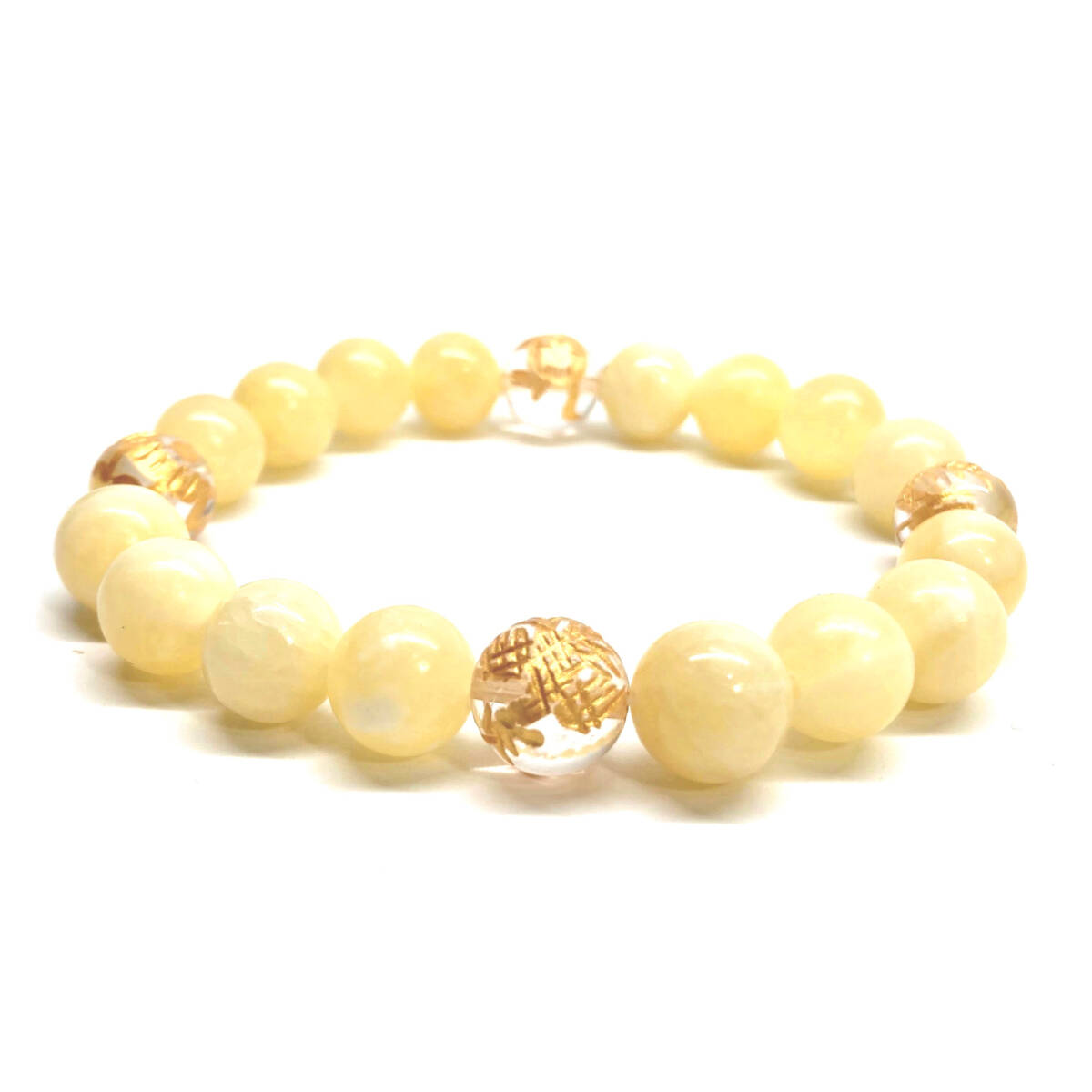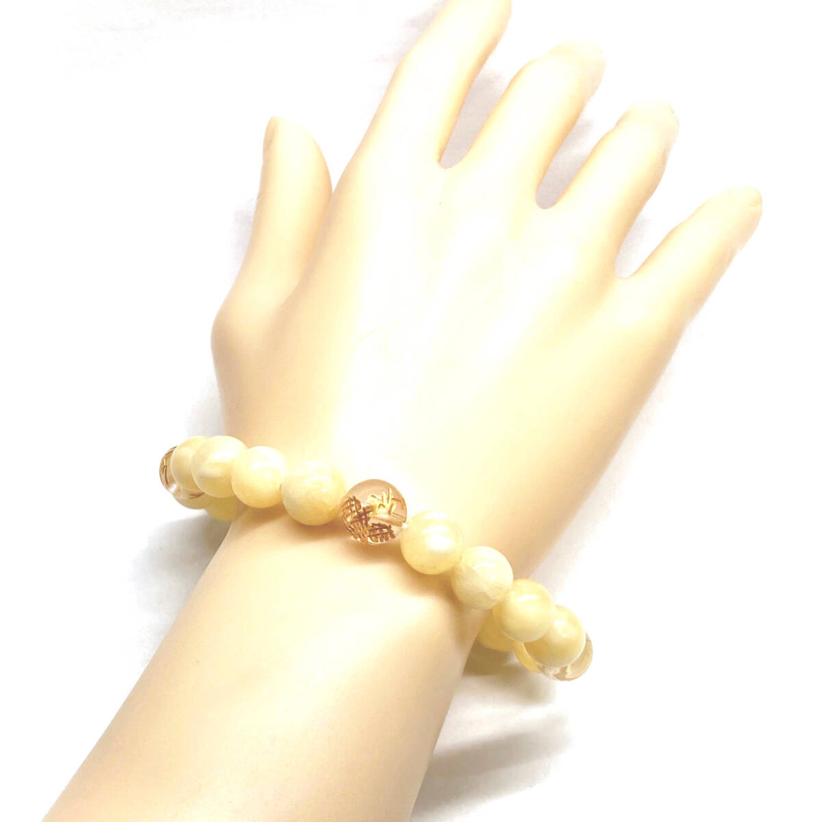 10mm 四神獣金彫水晶×アラゴナイト パワーストーン ブレスレット天然石 運気上昇 開運 金運 恋愛 青龍 白虎 玄武 朱雀 ☆