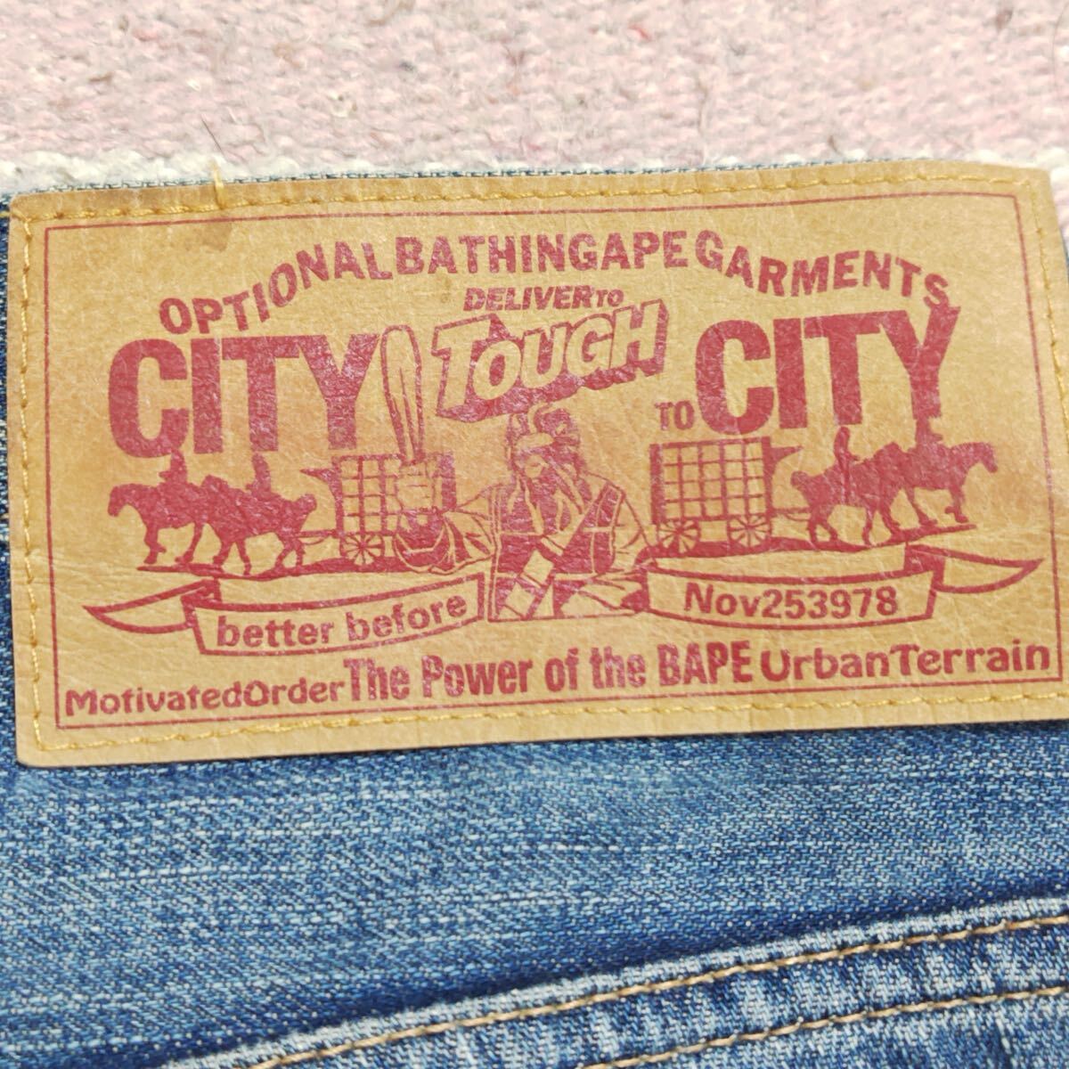 A BATHING APEは、そのユニークなデザインコンセプトとストリートカルチャーへの深いリスペクトが魅力のブランドです!!上質な生地と熟練した職人による丁寧な縫製、そして高度な加工技術によって生み出される、履き込んだような風合いがGOOD!!股部分に小さなダメージはありますが、着用時にはあまり目立ちませんので、まだまだ着用していただけます。