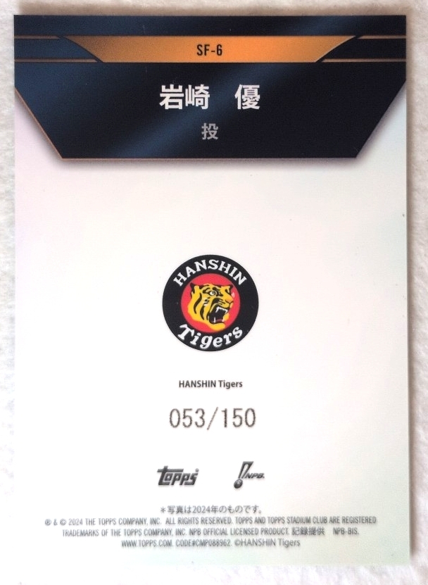 ★150枚限定★ 岩崎 優 阪神タイガース 53/150 TOPPS STADIUM CLUB 2024