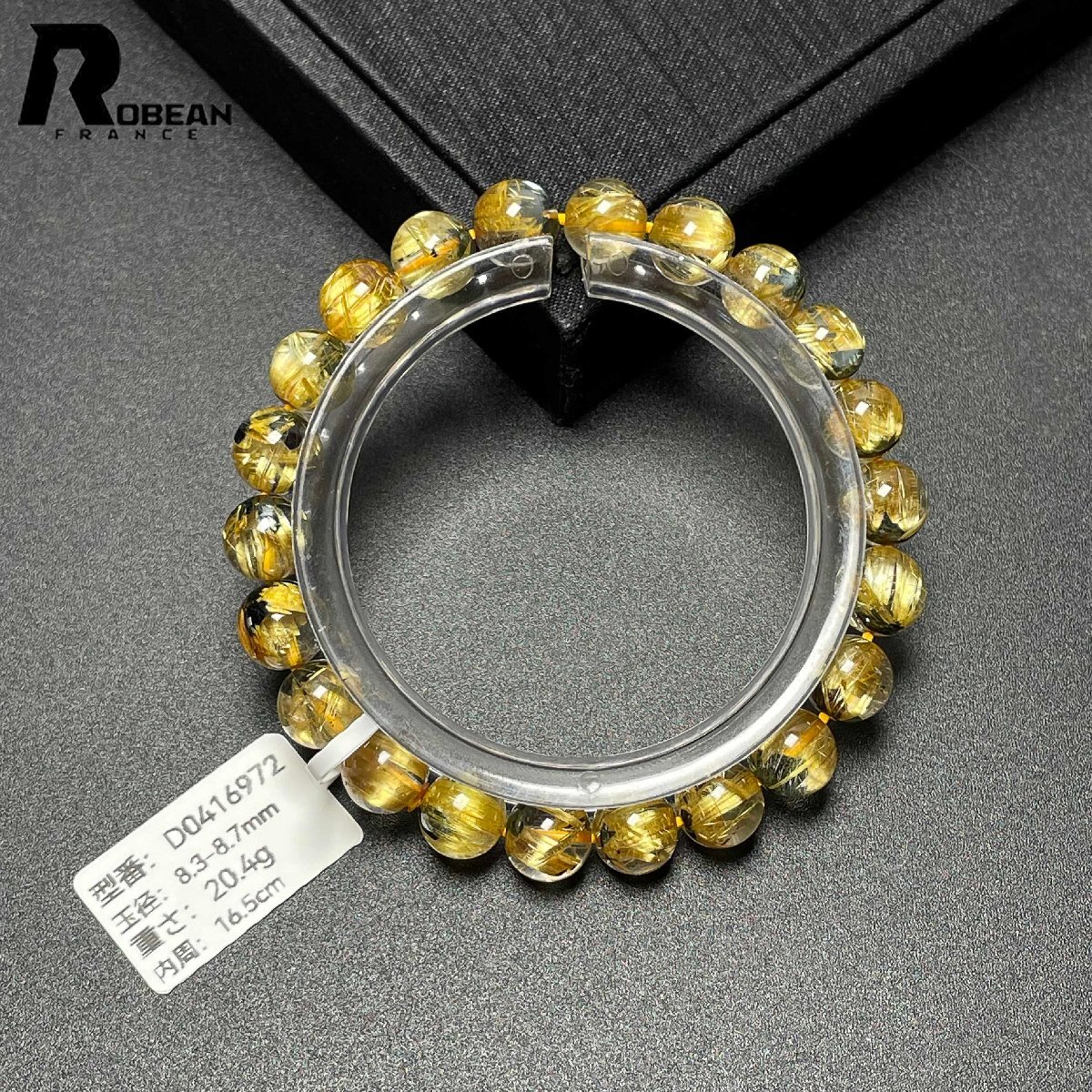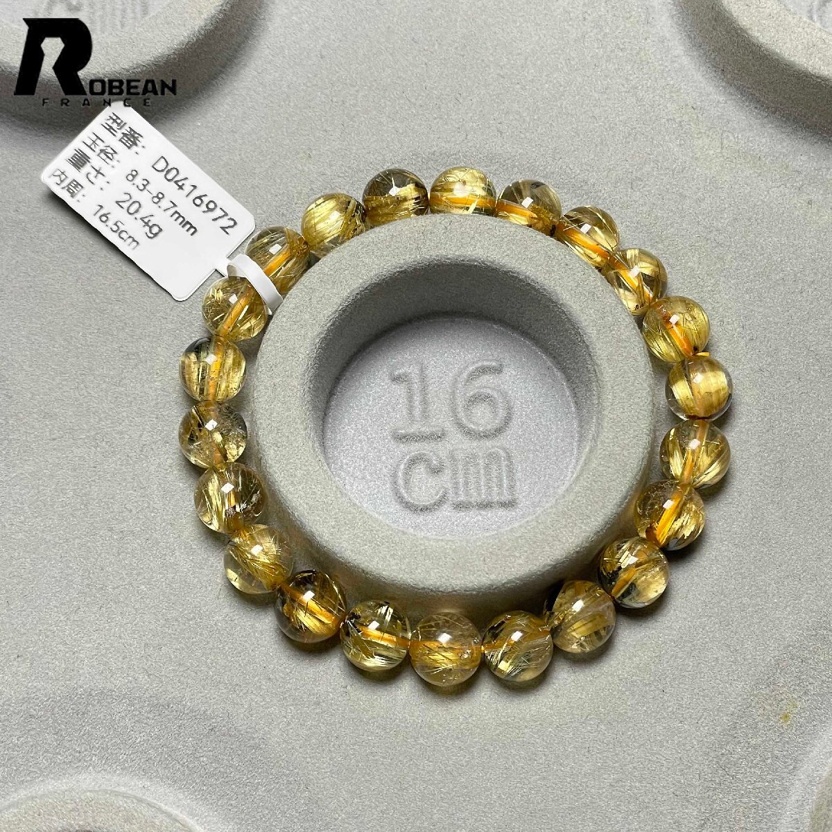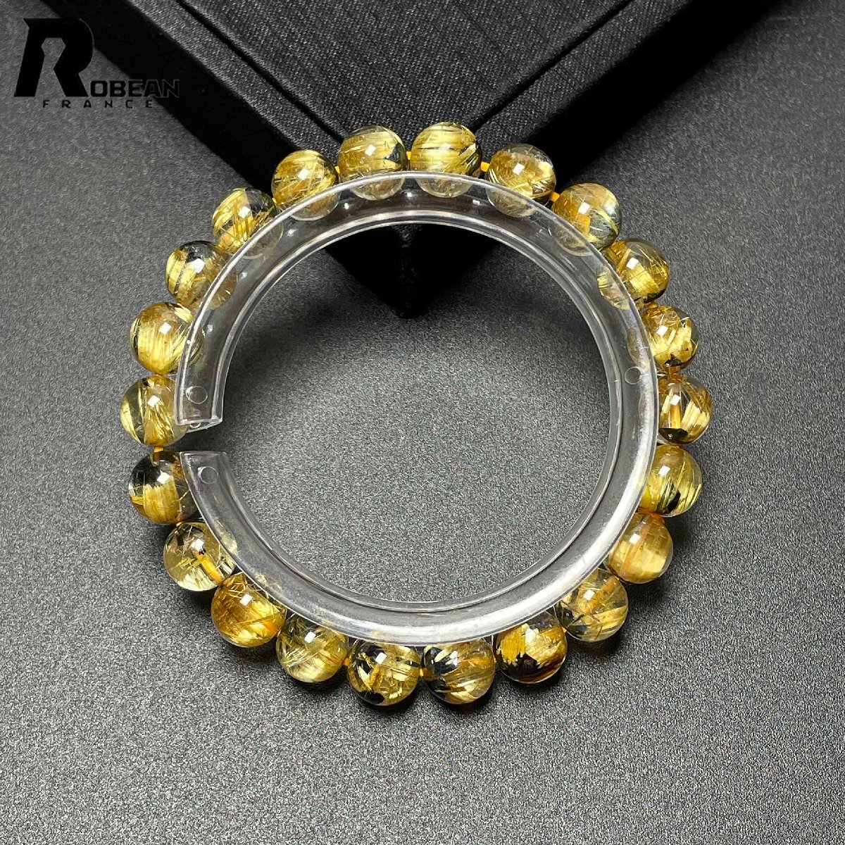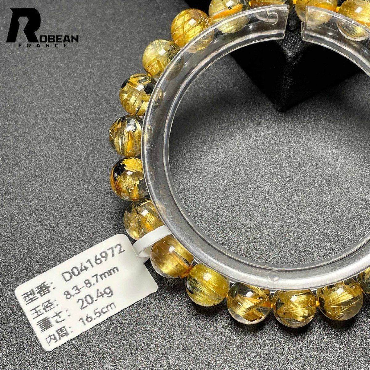 レア EU製 定価37万円★ROBEAN・太陽花タイチンルチル★黄金針水晶 金運 開運 ゴールド ブレスレット パワーストーン 8.3-8.7mm D0416972
