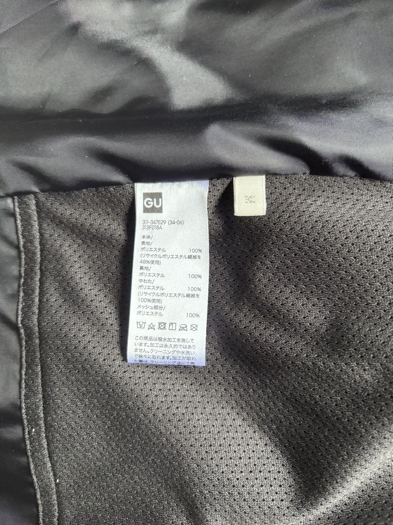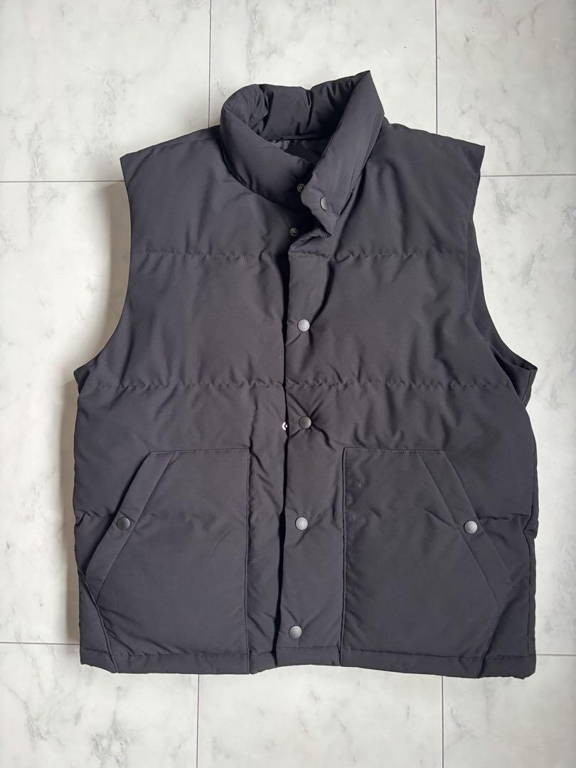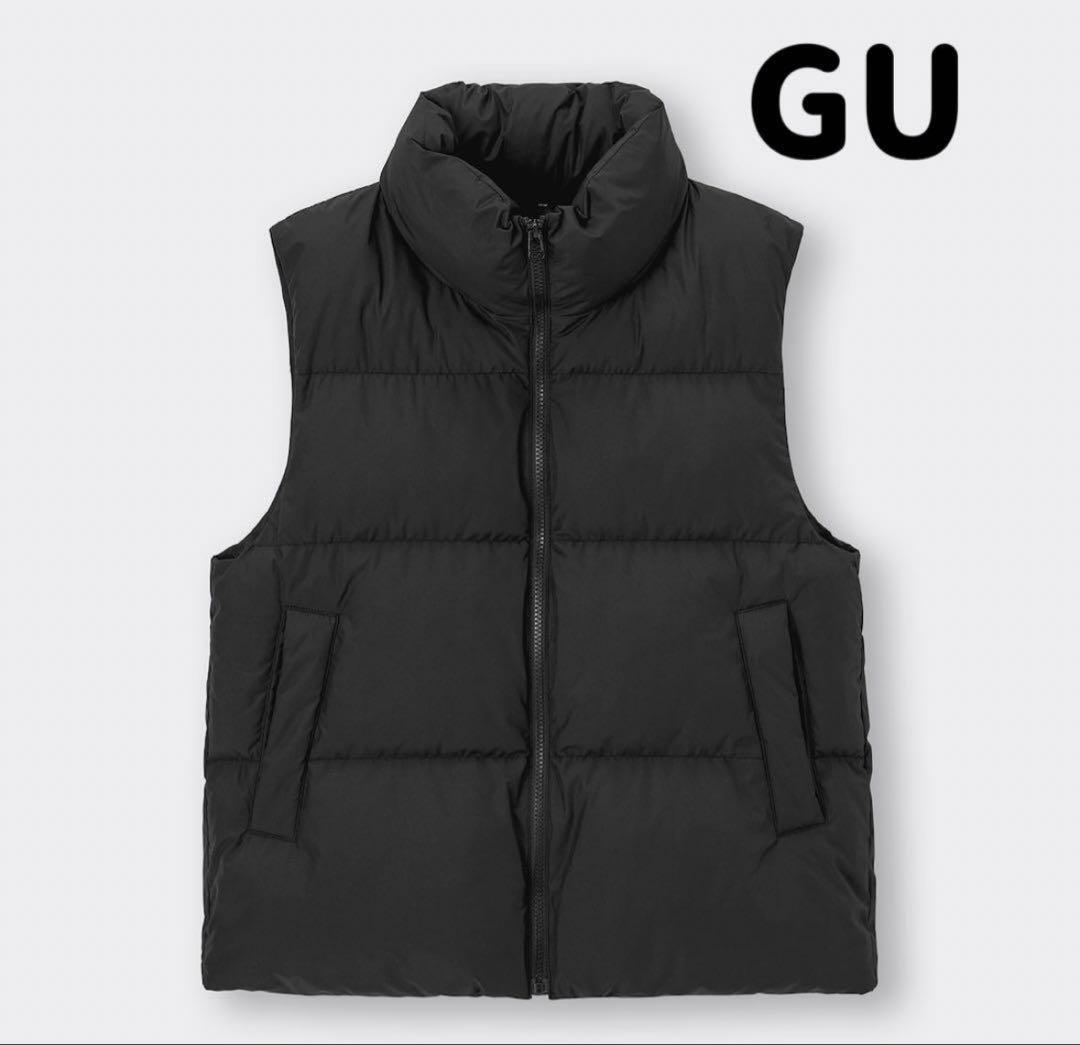 GUの黒いダウンベスト、サイズM、シンプルでスタイリッシュなデザイン。
