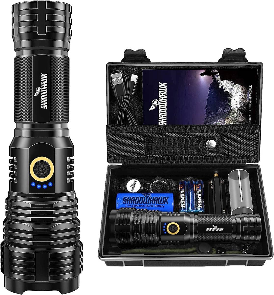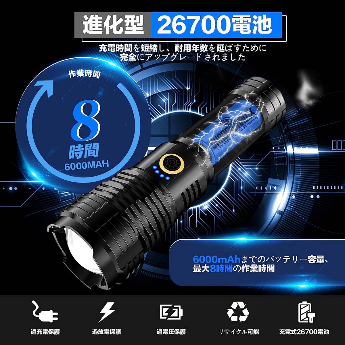 最新のXHP70.2 LEDチップを搭載したこの超強力なLEDフラッシュライトは、驚異的な20000ルーメンの明るさであなたの夜を照らします。