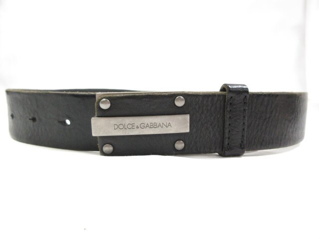 美品 【ドルチェアンドガッバーナ DOLCE&GABBANA】 レザー ブランドロゴバックル ベルト (メンズ) ブラック ◇30ME7713◇