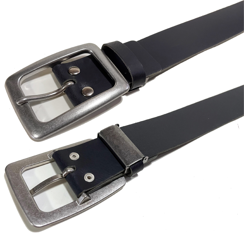 本来のウエストサイズ(腰の一番細い部分)とベルトを締める位置では、長さが異なりますので、必ず所有されているベルトのバックルピン先から、使用穴までの長さ測って頂く事を御奨め致します。