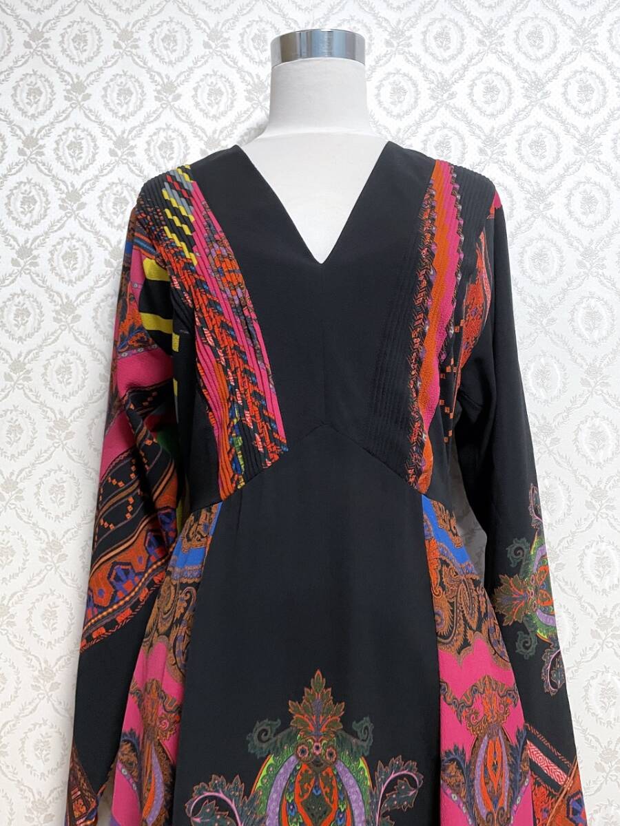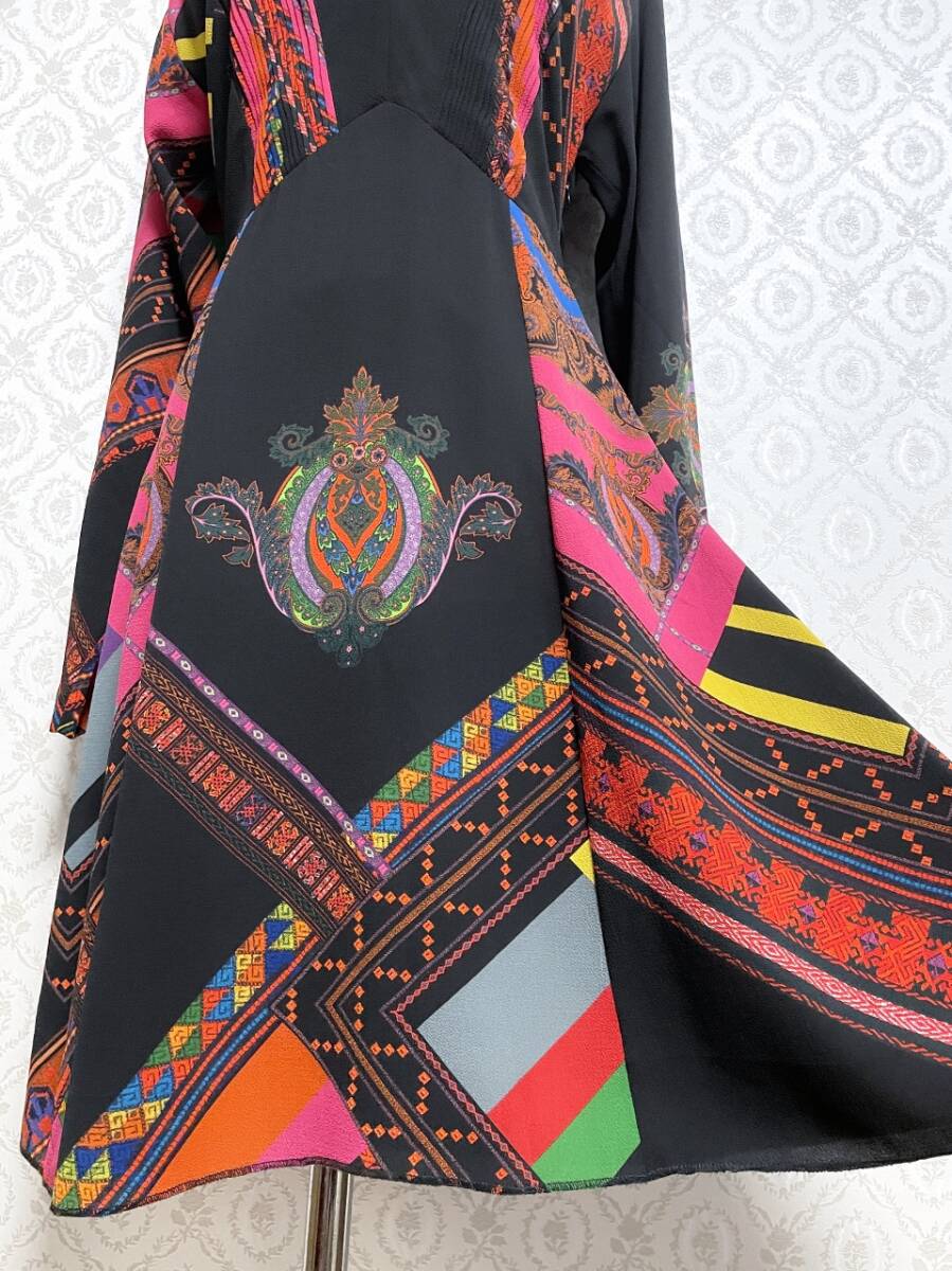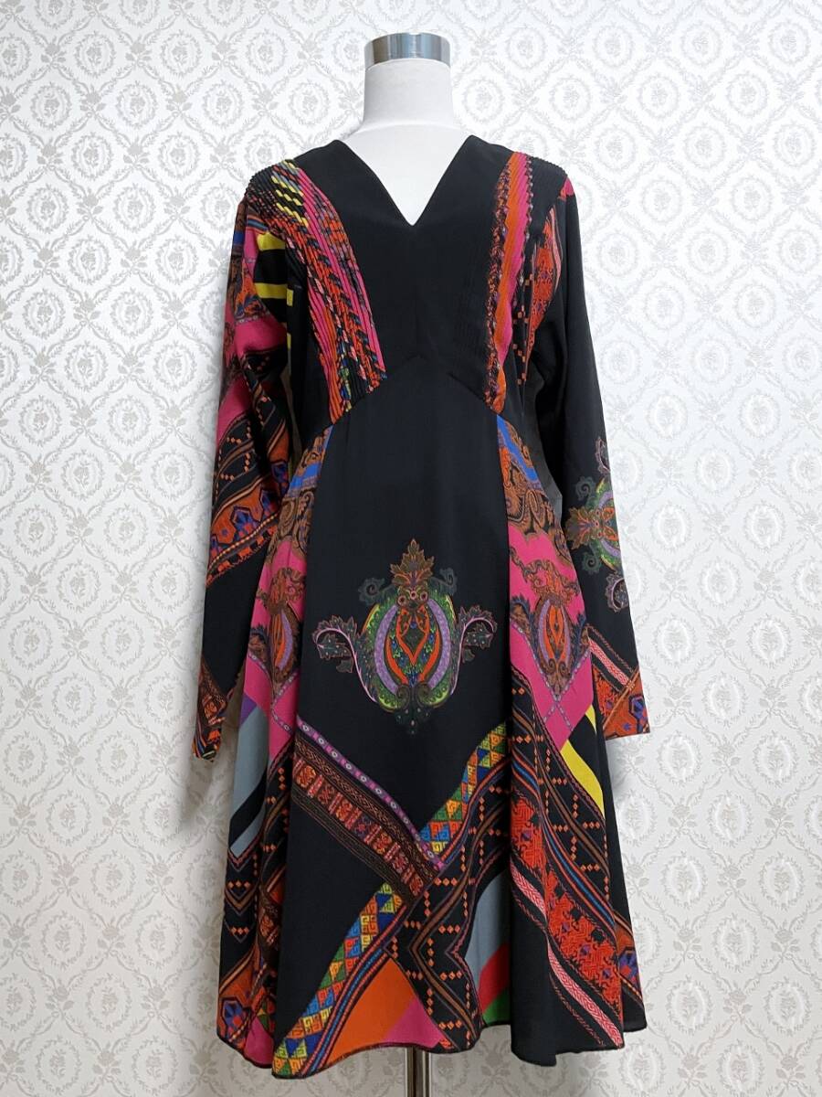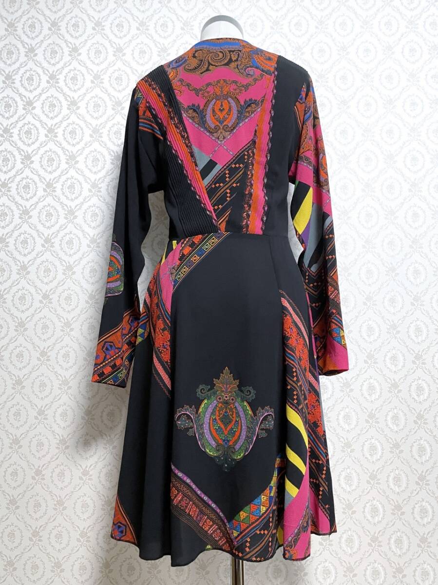 ETRO エトロ 柄物ワンピース ブラック×ピンク×マルチ 黒色
