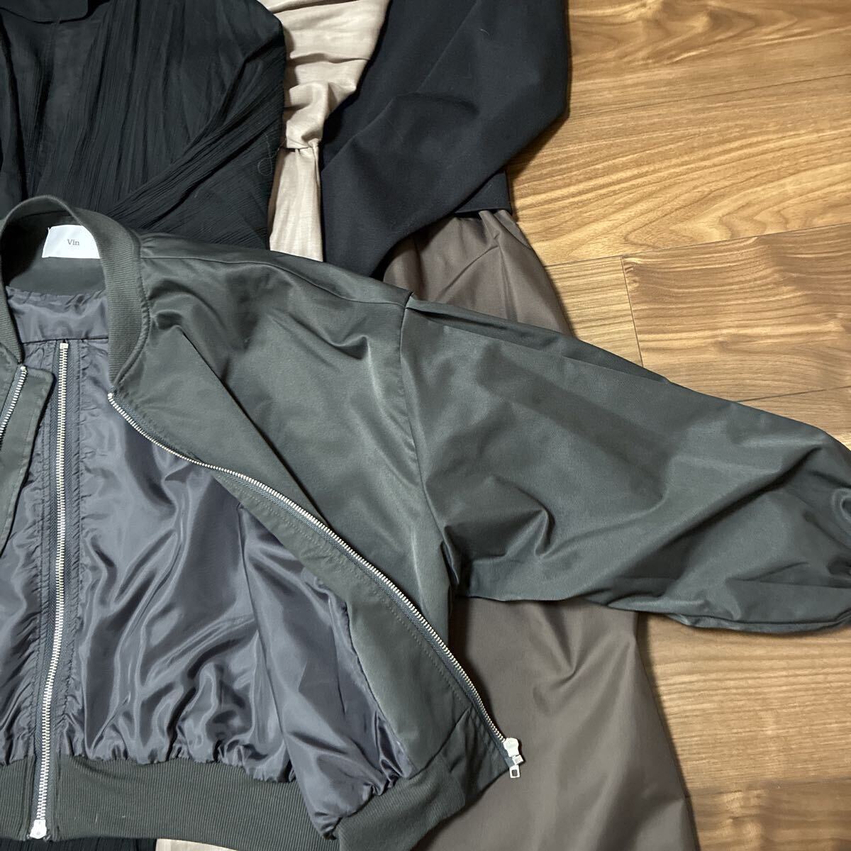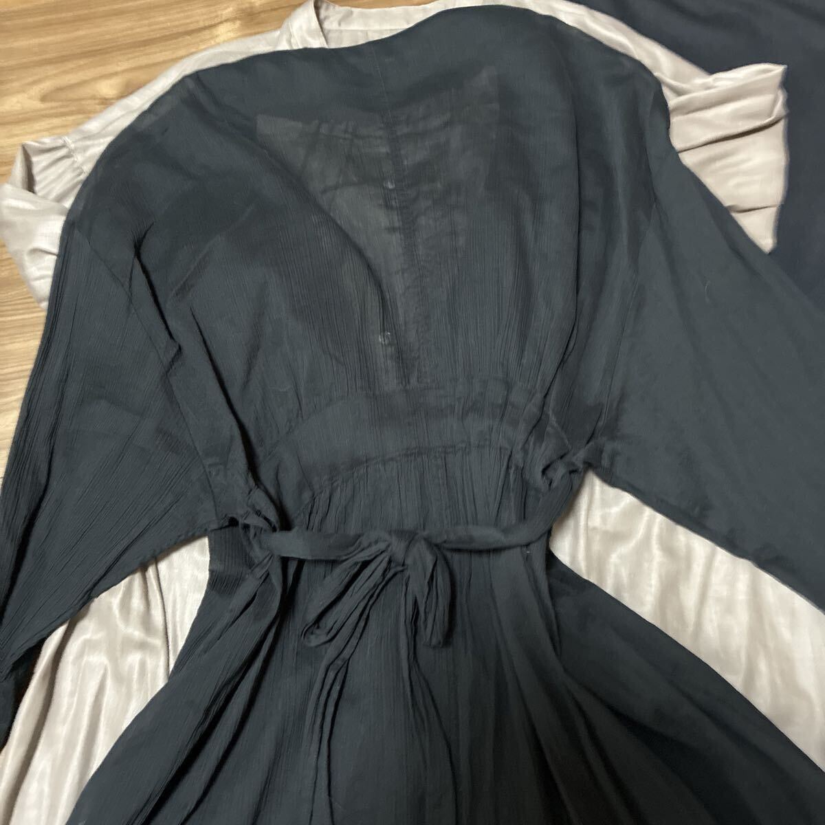 スコットクラブ購入ブラックシアーロングブルゾン、着丈97センチ、サッカー生地のような立体感があるサラッとした生地になります。同素材のベルトがついているので後ろで結んだりと、サッと羽織れ一枚で様になるオシャレなブルゾンになります。一回着用になります。