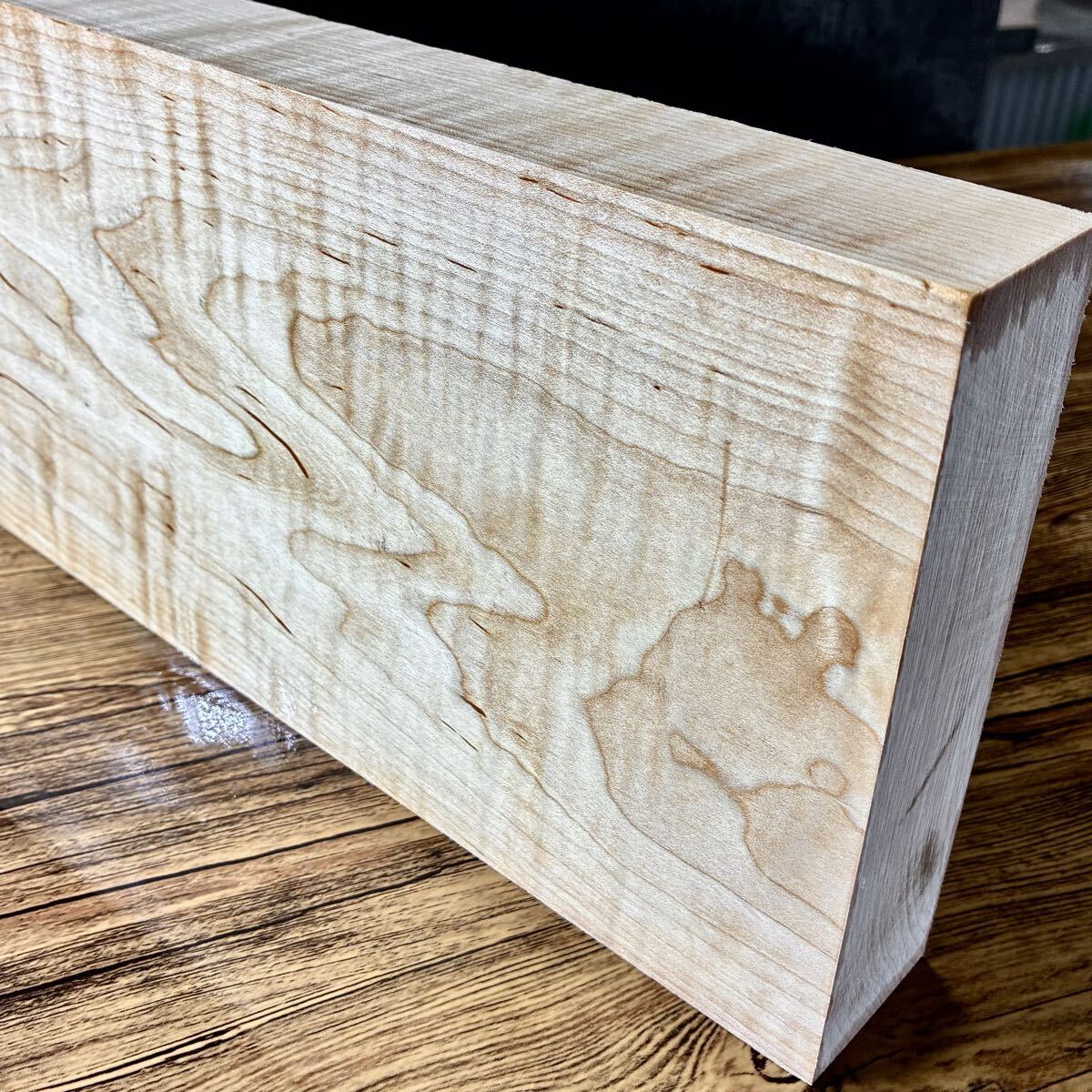 『OS021』超極厚 極上美杢 激縮み杢 超特大 カーリーメイプル(縦幅厚561-181-50㎜)ギター材 ギター素材 ペンブランク ハンドメイド素材