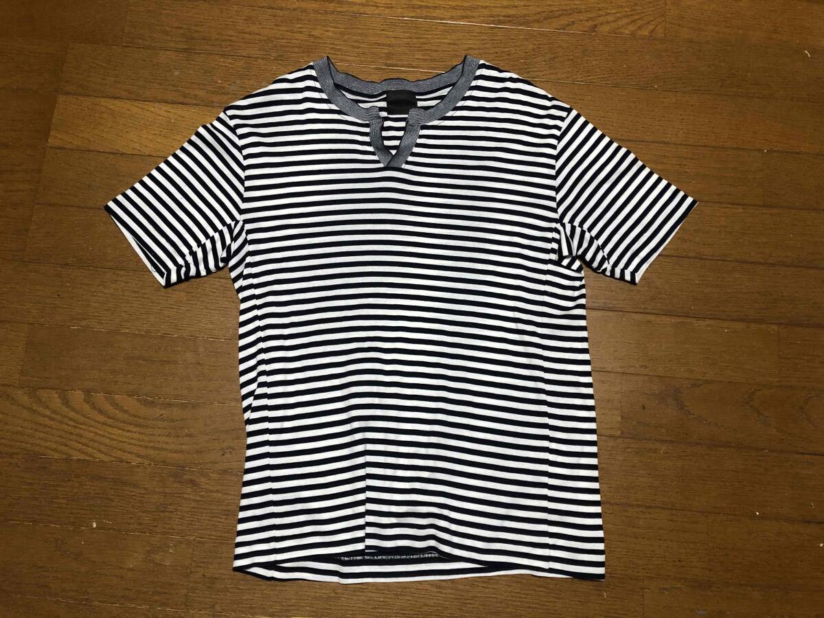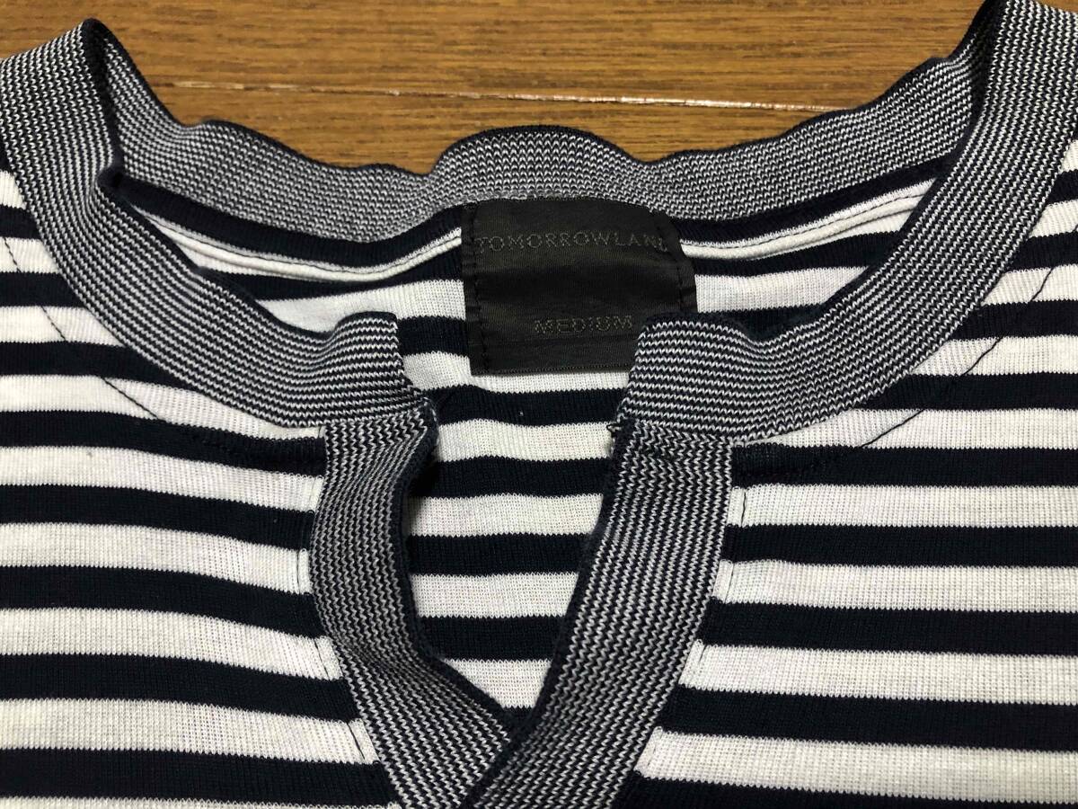 ★TOMORROWLAND トゥモローランド★半袖キーネックTシャツ★白×ネイビーボーダー★Mサイズ★日本製★送料230円★