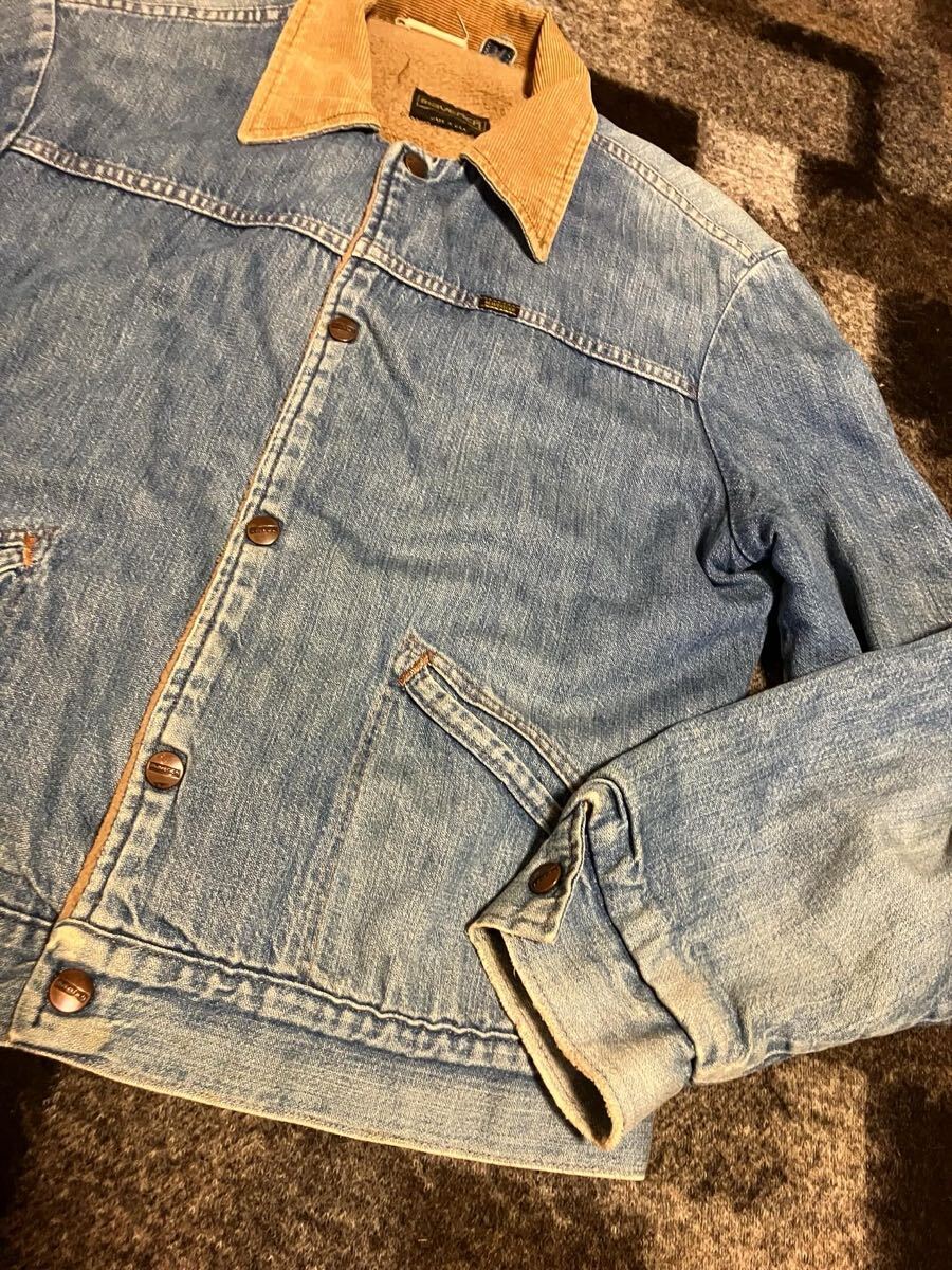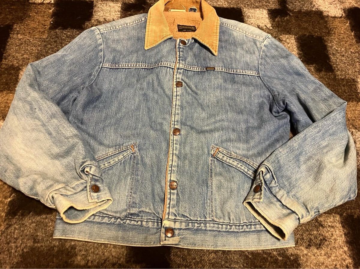 デニムボディにブラウンのコーデュロイ襟、そしてシェルパ(ボア)ライニングを備えた、冬の定番かつ傑作モデルです。LeeのStorm RiderやWranglerの124MJに並ぶ存在感を誇り、アメリカ本国でも今や希少価値が高まり続けています。