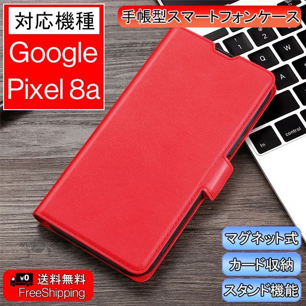 | 商品名 | Google Pixel 8a用 スマホケース 新品 手帳型 レザー 耐衝撃 カード収納 携帯ケース TPU 無地 ピクセル シンプル レッド |