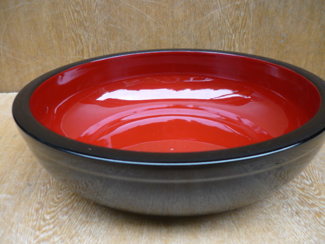 こね鉢 未使用品 黒内朱色 手打ち麺道具 直径≒31cmx高さ≒8cm 画像写真で状態をご確認の上ご判断ください。
