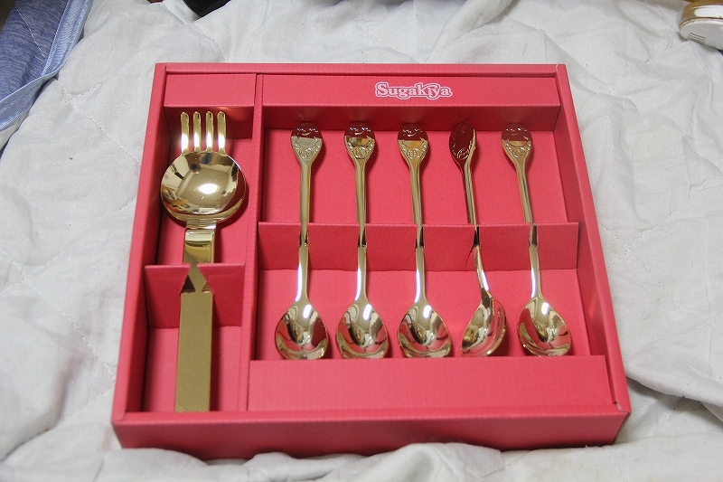 金色 ラーメンフォーク スガキヤ Happyスプーン 全5柄 セット 検索 スーちゃん スポーク 寿がきや ゴールド 非売品 キャラクター グッズ