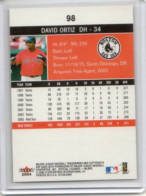 ★☆デイビッド・オルティーズ カード Vol.25 2004FLEER ULTRA☆★ | |