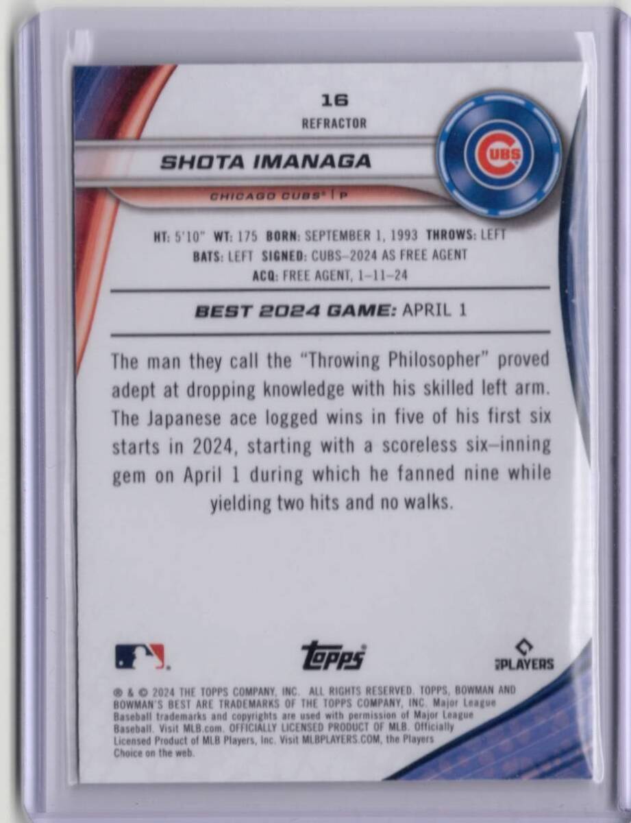 ★商品説明★ | 2024BOWMAN'S BEST REFRACTOR #16 RC 今永昇太 MLBルーキー・カード 今永ファンの方、是非どうぞ! |
