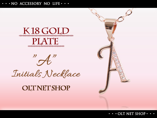 A/イニシャル/ネックレス/新品/K18GP/ピンクゴールド/レディース/18金/チェーン/アルファベット/英語/頭文字/CZ/ダイヤ/PG
