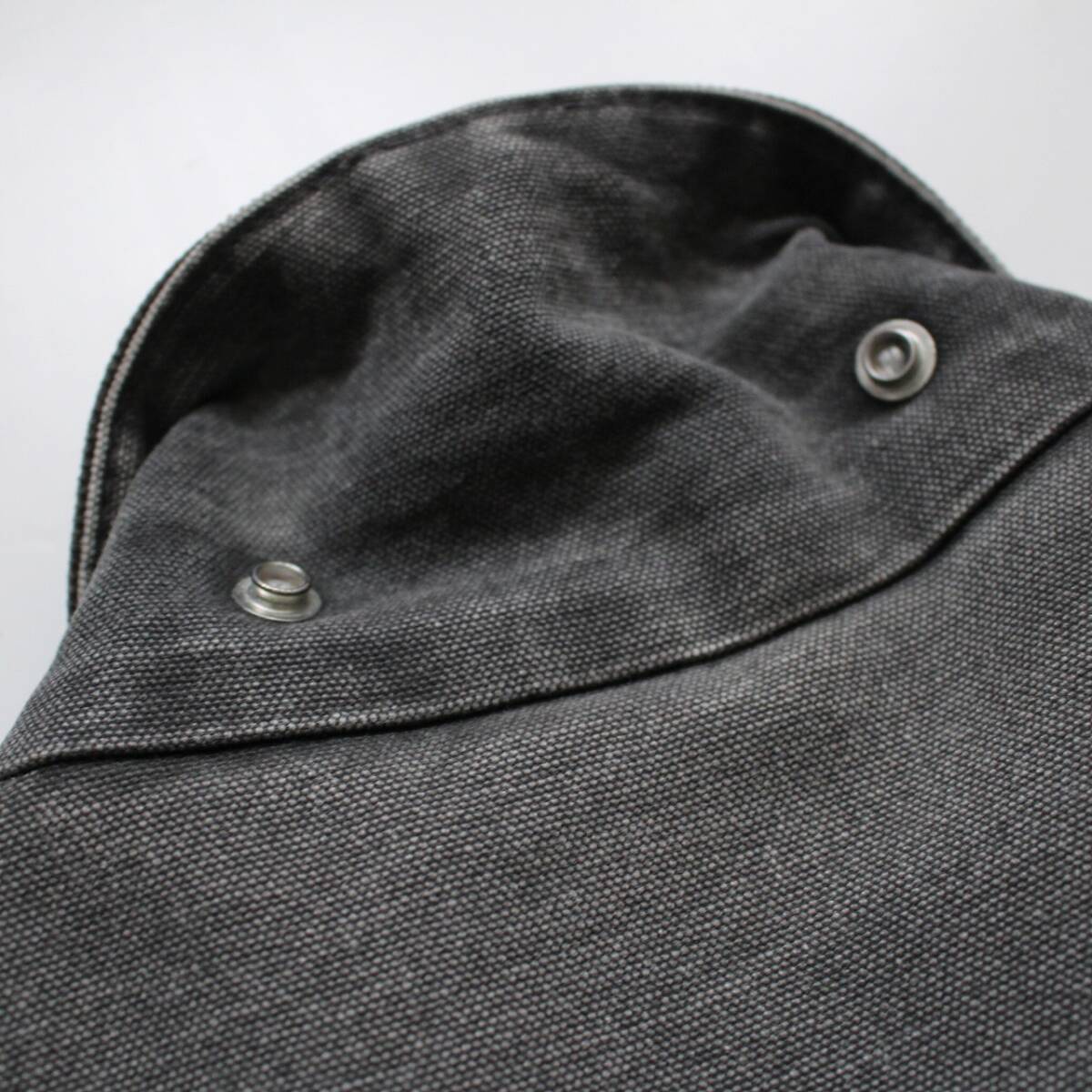 ブラックのダック生地で、襟はコーデュロイ素材、前はYKKシングルジッパー、4ポケット、