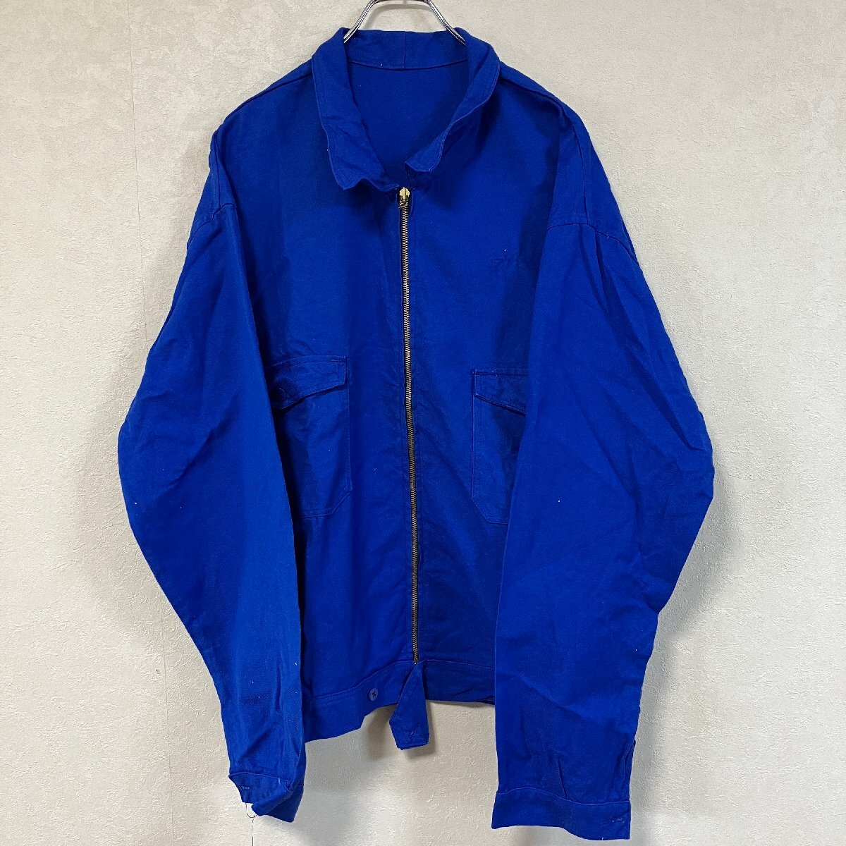 A1470 ユーロ古着 フレンチワーク ジップアップ 長袖 コットン ワークジャケット ブルー メンズ