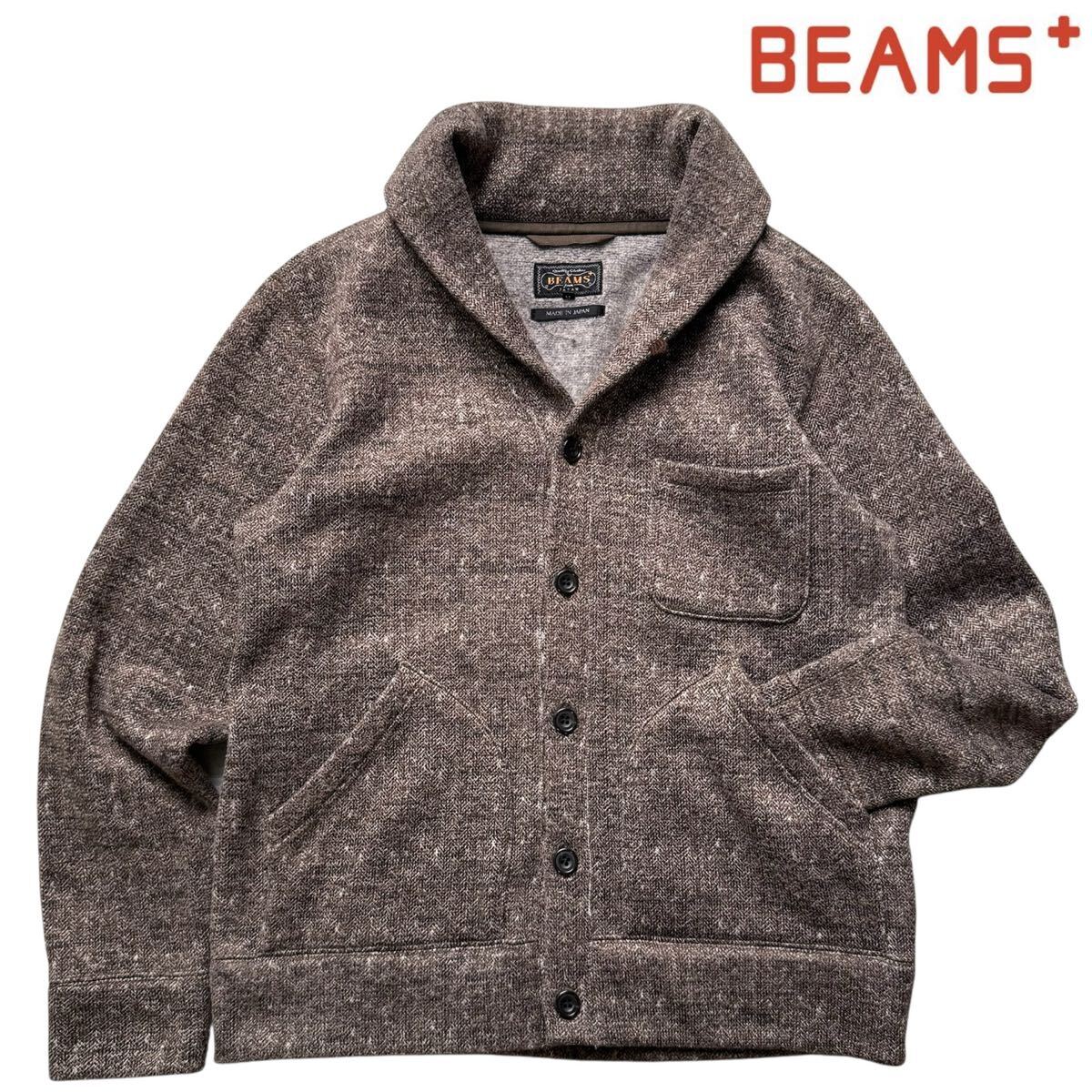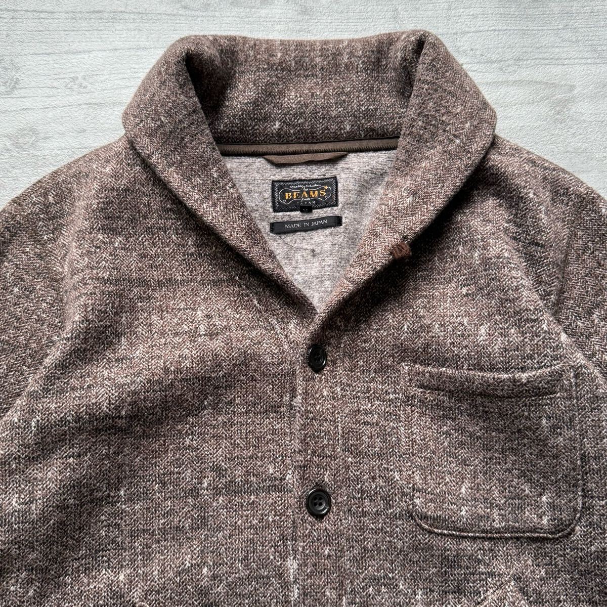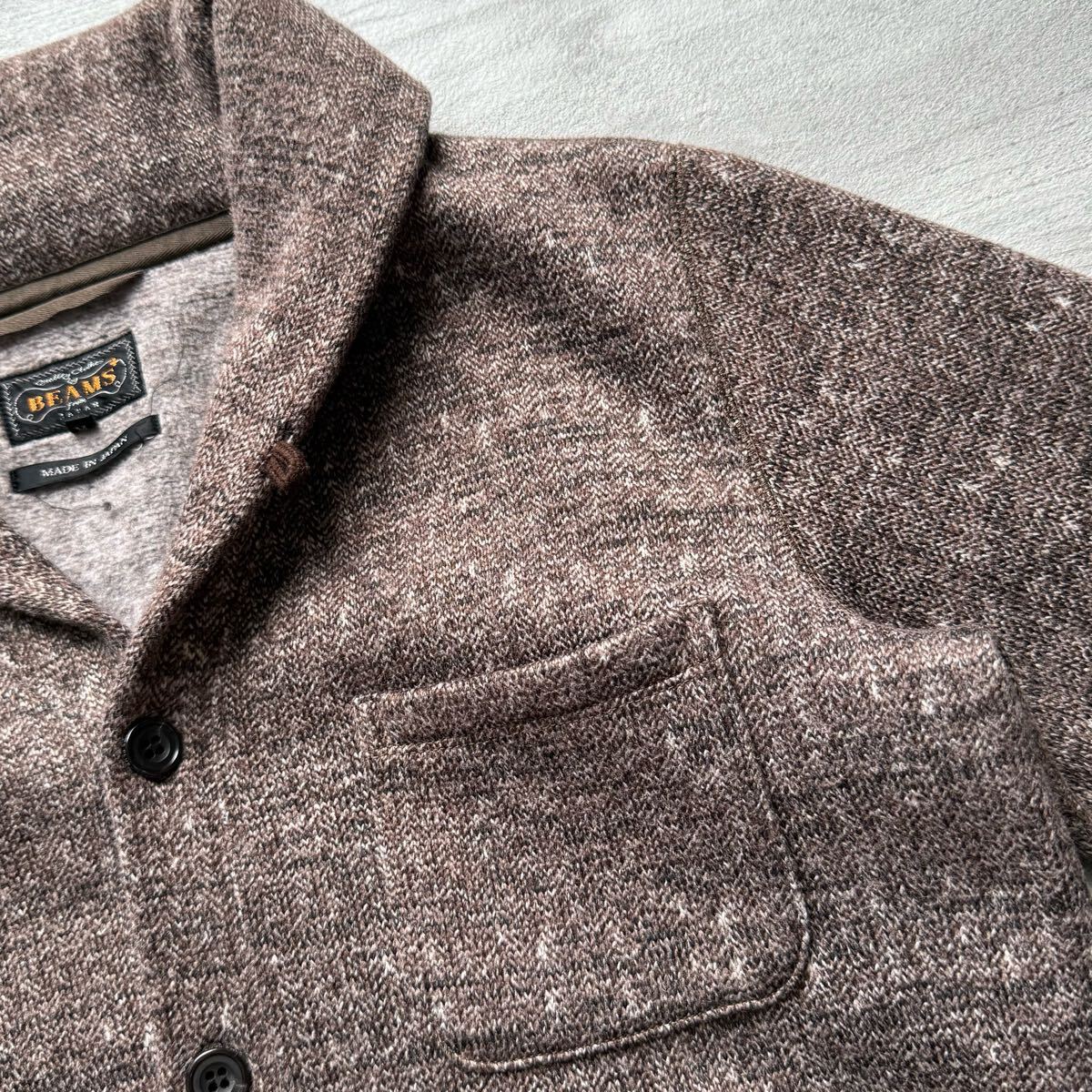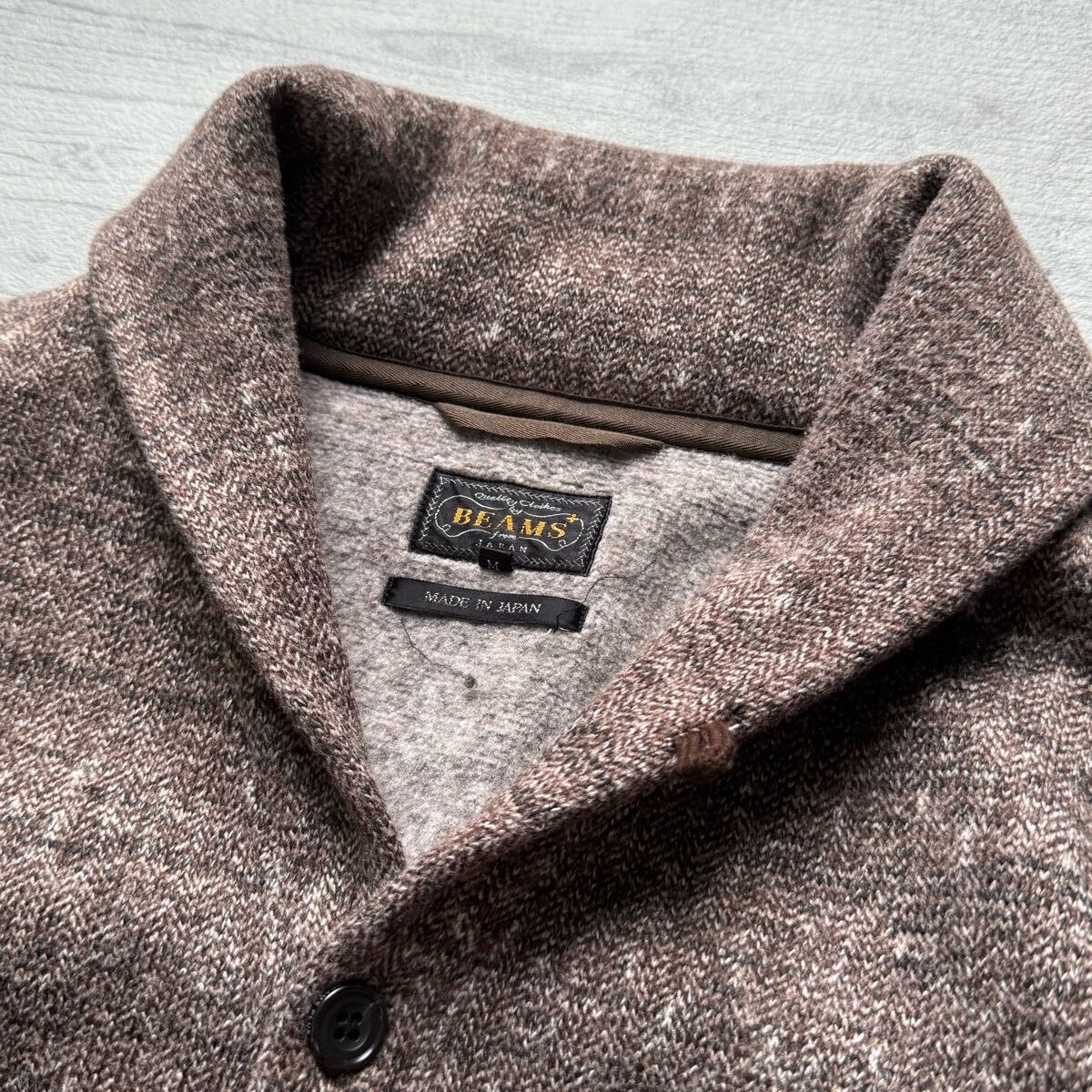 【ビームスプラス】ポリエステルニット カーディガン ヘリンボーン Mサイズ ブラウン