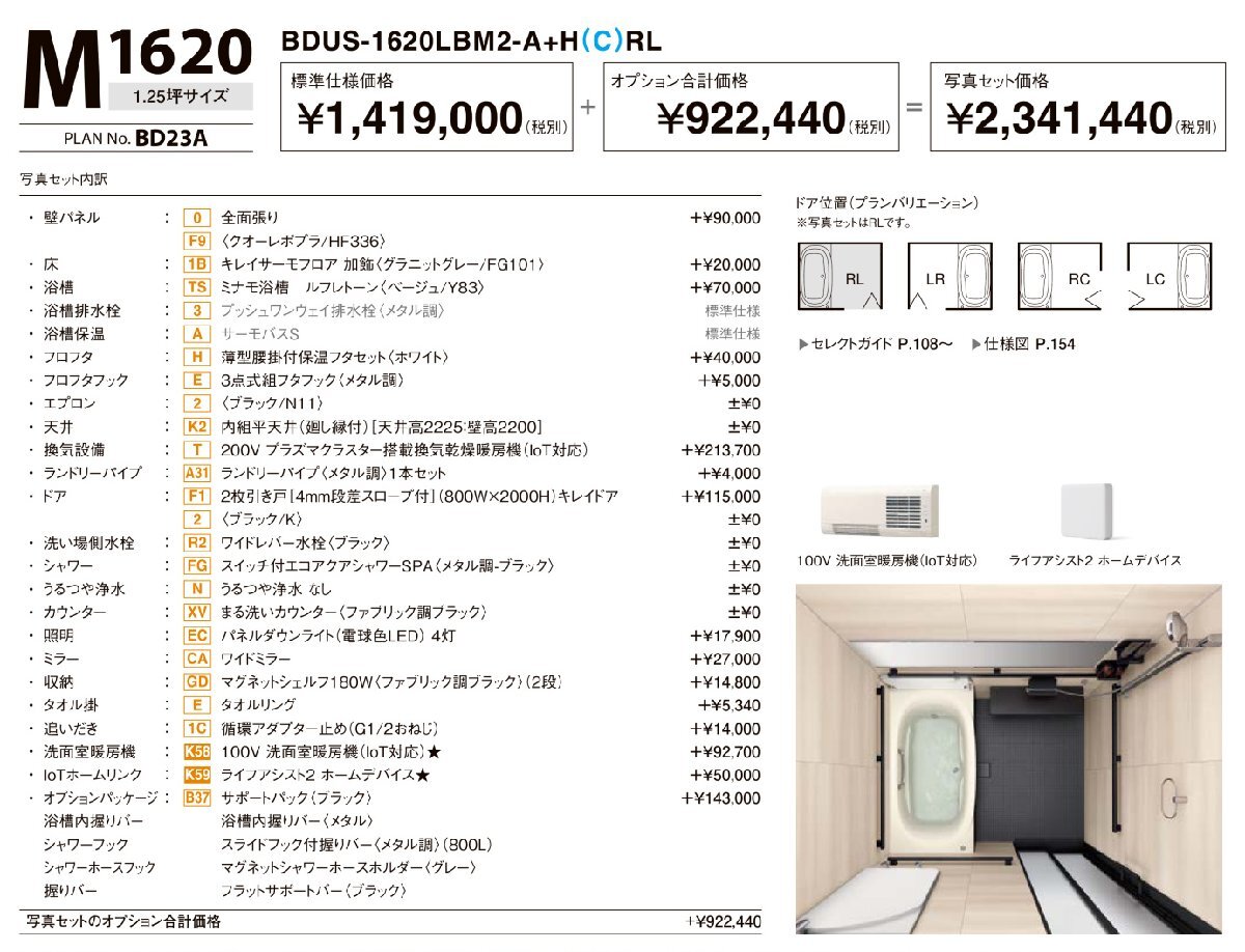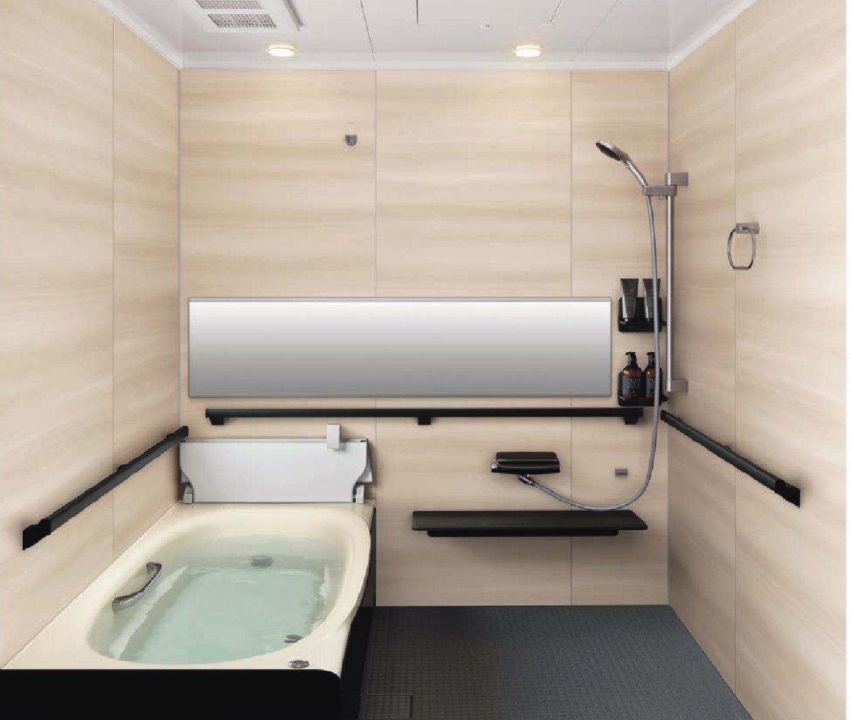 ◎LIXIL戸建住宅システムバス『リデア 』1620サイズ・Mタイプ 即決価格は、商品定価1.983.340円の68%OFFで、698.135円【消費税込】 ◆据付必要寸法は、1670×2070×H2750mm。 ◆あなたのライフスタイルにぴったりのバスルーム『リデア』 ◆壁は、全面張り。クオーレポプラは、なめらかな木目を再現。上質で落ち着いた空間をつくります。 ◆床は、スポンジでキレイ。冷ヤッとしない。水はけがよく、すべりにくい『キレイサーモフロア加飾』 ◆お湯をぬくたびに強い渦の力でゴミをまとめる『くるりんポイ排水口』 ◆極上の入浴感をかなえる『ミナモ浴槽』湯面の広がりと、開放感が感じられる人工大理石浴槽です。 ◆2枚引き戸です。汚れにくいスッキリデザインの『キレイドア』 ◆たっぷり置けて、裏までキレイな『まる洗いカウンター』カウンターがまるごと壁からカンタンに外せます。 ◆ダブル保温構造で、最後のひとりまで、あたたかい『サーモバスS』 ◆スライドフック付握りバーが付いています。 ◆大粒の雨のような、やさしい浴び心地のシャワー『エコアクアシャワー』 ◆どの角度からもフィットするレザー調の大型ハンドル『ワイドレバー水栓』 ◆まぶしさを抑えた発光面で、低消費電力・長寿命のLED照明『パネルダウンライト』 ◆換気乾燥暖房機・洗面室暖房機・ホームデバイスは付いていません。 ◆窓・追い焚きセットは価格に含まれていません。 ◆北海道仕様はお問い合わせください。 | |
