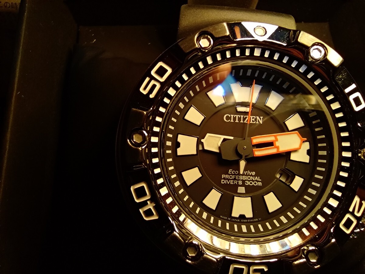 CITIZEN Eco-Drive PROFESSIONAL DIVER"S 300mの表示が文字盤に有ります。