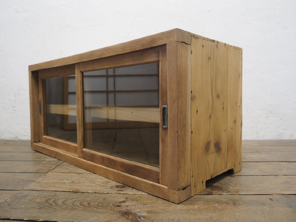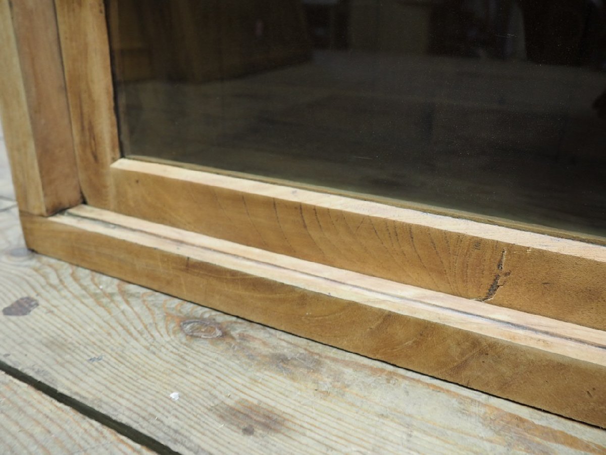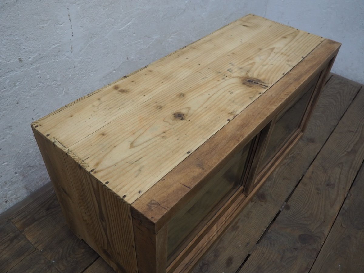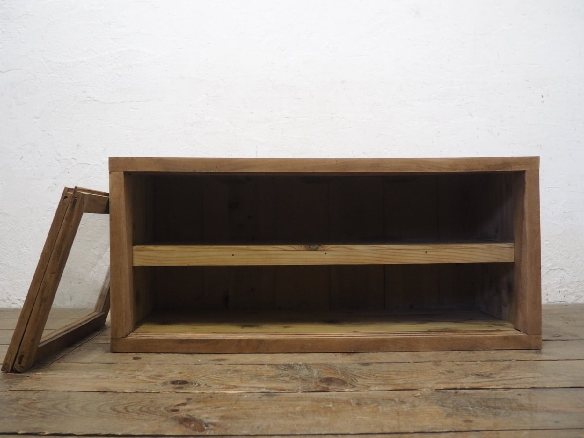 タ荷T0201◆①H45,5cm×W100,5cm◆アンティーク◆味のある古い木製ガラスケース◆飾り棚 食器棚 収納ケース キャビネット レトロL(ヤB)松