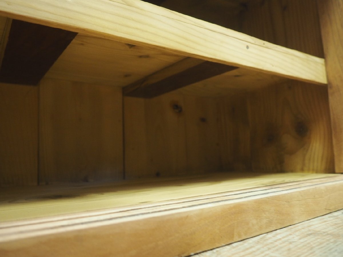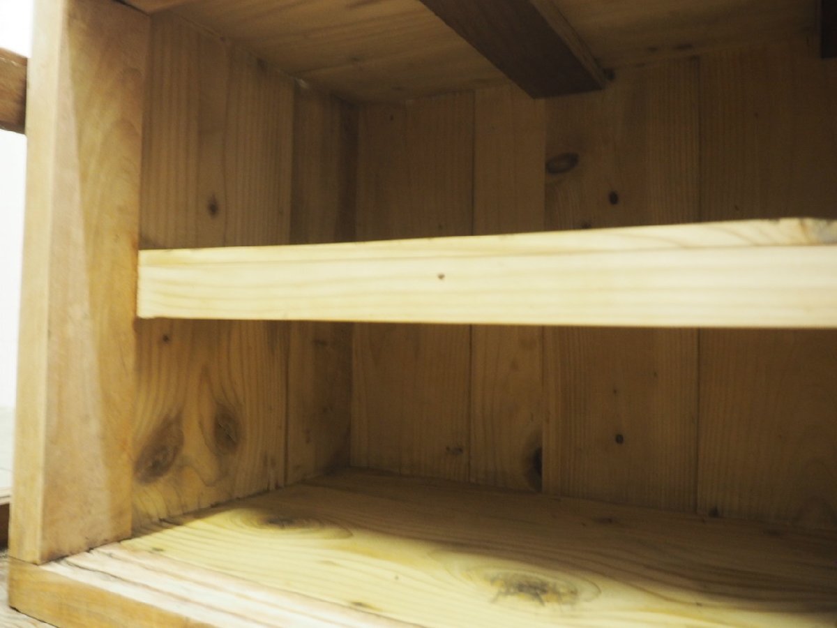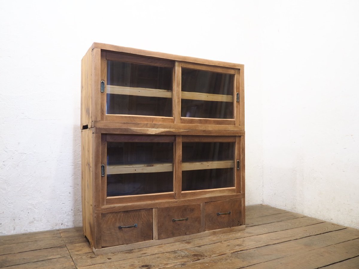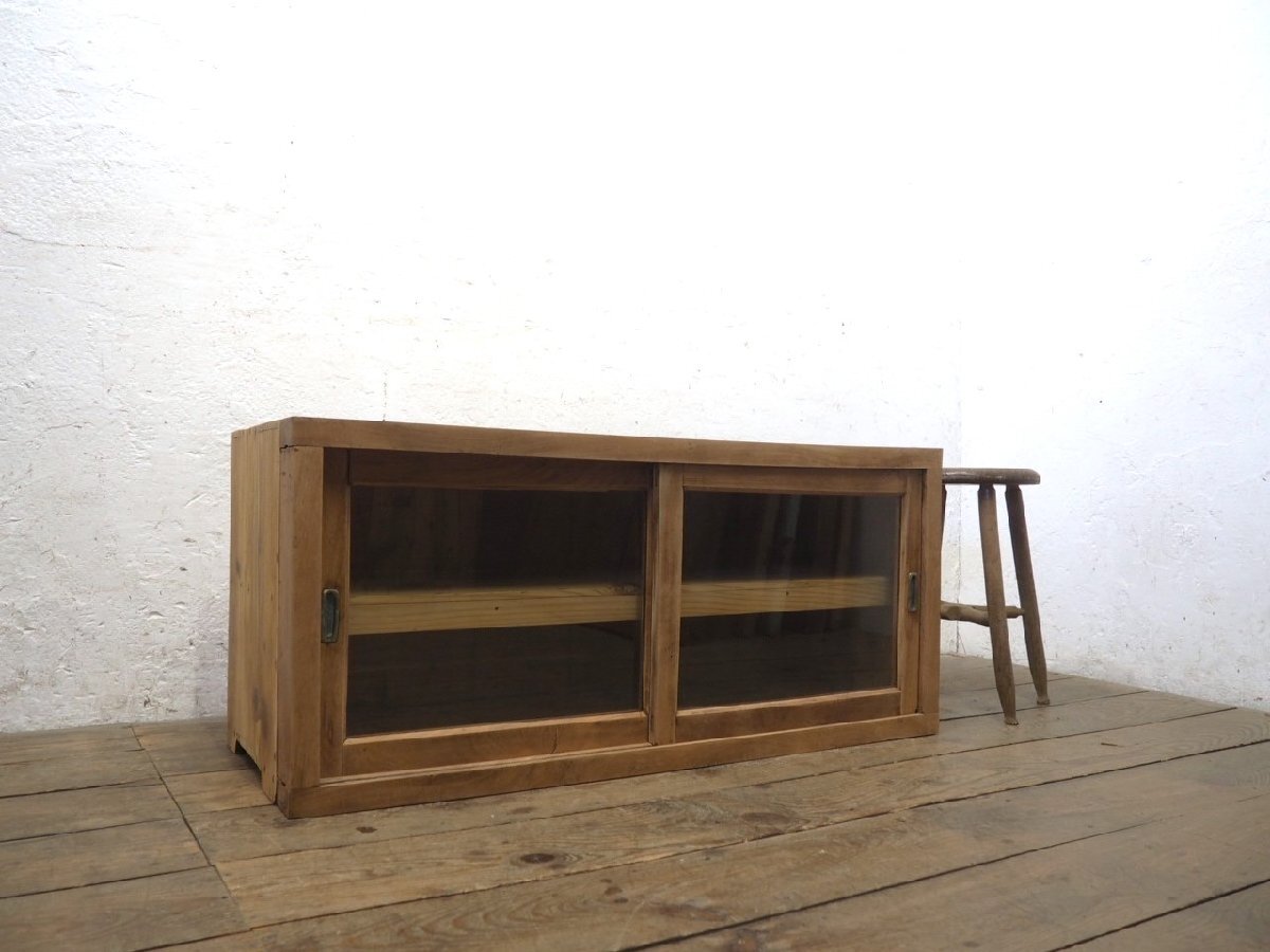 タ荷T0201◆①H45,5cm×W100,5cm◆アンティーク◆味のある古い木製ガラスケース◆飾り棚 食器棚 収納ケース キャビネット レトロL(ヤB)松