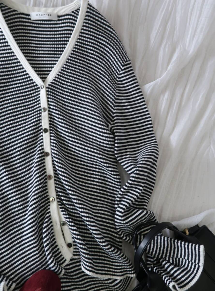 上質なコットン糸を使用し、さらりとしたタッチでほど良い肉感のあるカジュアルな表情に仕上げたリブニットシリーズ。 カーディガンはボディにフィットするすっきりとしたシルエットに深すぎないVネックラインで、クリーンかつ女性らしいバランスに仕上げています。 羽織りとしてはもちろん、ボタンを留めてプルオーバーのように着用するのもおすすめ。 オンオフ問わずさまざまなシーンで活躍してくれる万能なベーシックアイテム。