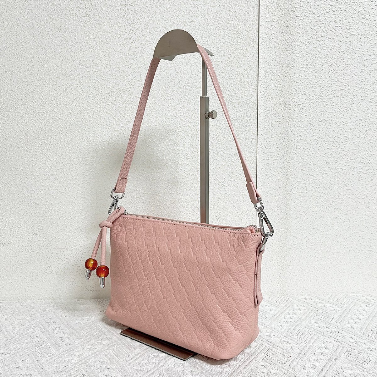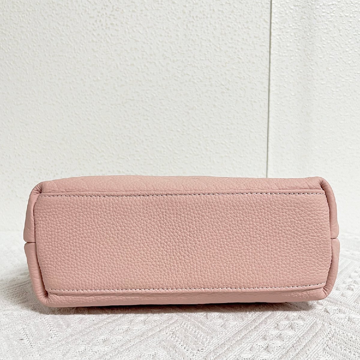 軽くてコンパクトなバッグですが、意外にも大容量で収納力抜群で、サングラス、香水、化粧品、スマホ、外出時に必要なものをすべて入れています。取り外し可能なショルダーストラップ付きで、手持ち、肩掛け、斜め掛けもでき、気分や服装に合わせて自由に使えます。バッグ底部には四つの底鋲付きで、何も入れなくても自立するデザインで、汚れや傷付きなどを防ぐことができます。