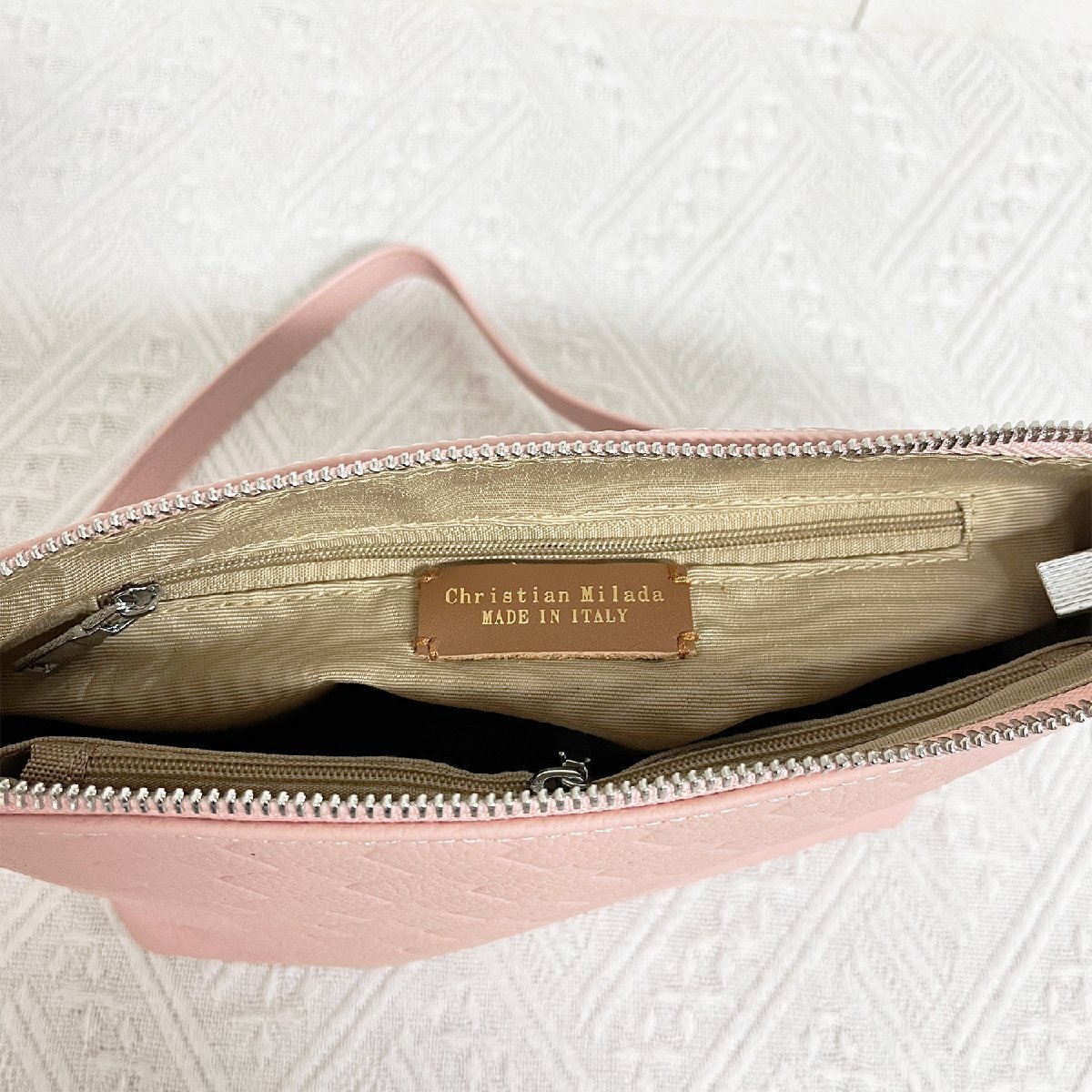 上品EU製 定価12万★christian milada・ミラノ発・ハンドバッグ★最高級牛革 ソフト エレガント ショルダーバッグ オフィス 通勤 レディース
